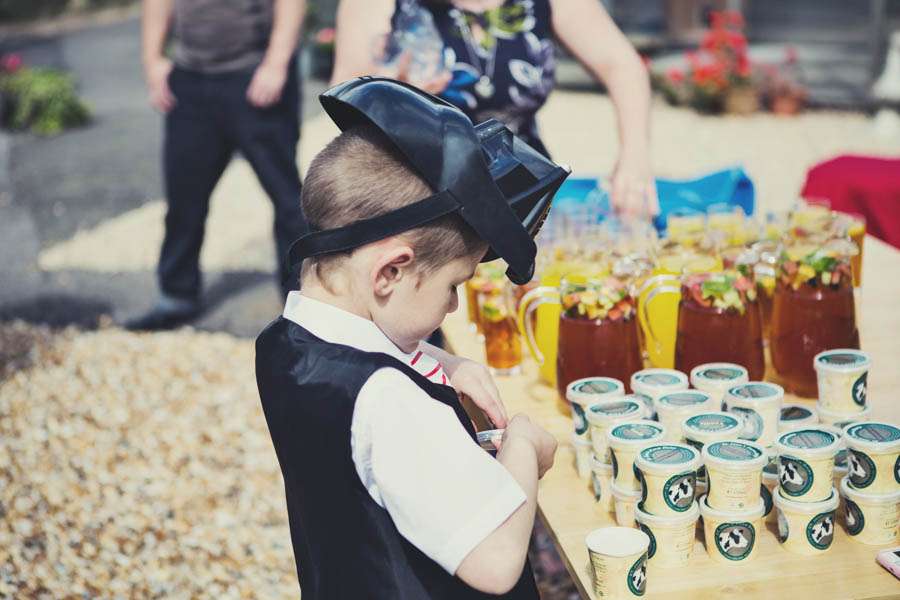 “Our family and friends made this wedding what it was!”, Jennie concluded. “Jon’s best men (one had come all the way from Colorado to be part of the day) and their families helped cut, build, fix, make and bake over the week leading up to the wedding. My mum and step dad allowed us to use their house and garden for the reception and grew so many amazing flowers to decorate the grounds. My maid of Hobbit (a family joke) was my sister and she made cakes, collected glasses and made cake stands, created our flower arrangements, made hair decorations, made 100s of metres of bunting and was generally AMAZING. My step sister Becky, was my other adult bridesmaid, was fantastic at making so many salads and helping to create and set up the marquee. I’ve never realised how lucky we were to have the people around us that we do until we got married!”