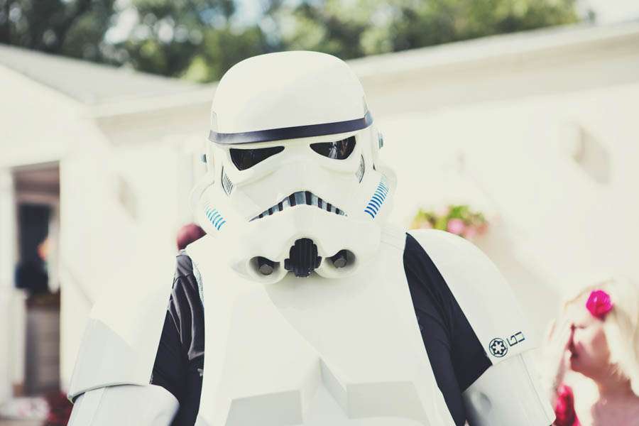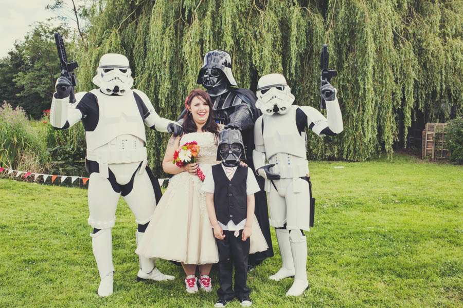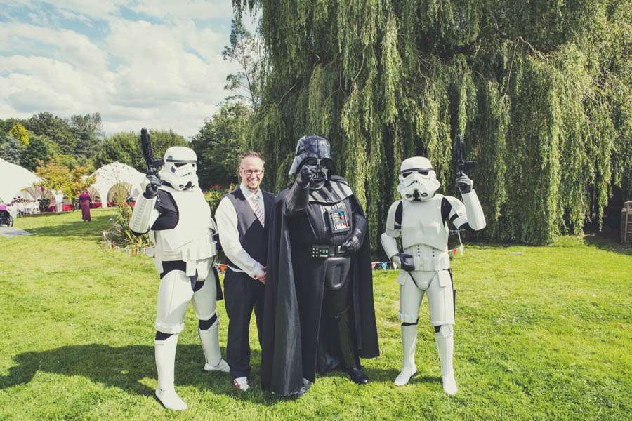Having to save money didn’t mean they didn’t have plenty of surprises in store for their guests including a Spiderman bouncy castle, custom temporary tattoos and characters from Star Wars! “We didn’t tell anyone that we had booked the 501st legion to be at the reception so when people turned into the drive they were directed to their parking spaces by two Storm Troopers and Darth Vader! I think they were sick to death of the ‘these aren’t the droids..’ quote by the end of the day!”