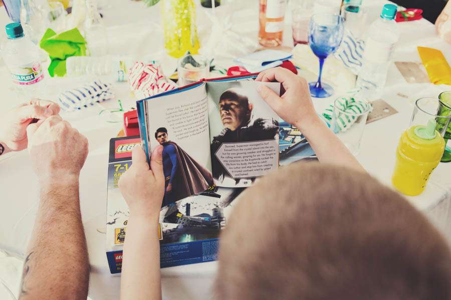 “We designed a ‘fun book’ instead of an order of service. Jon designed the front cover in the style of Lego instructions with a bride and groom mini figure. We included all the order of day information as well as bios of the wedding party, word searches, a quiz and photos of my dad and Jon’s mum who had passed away a long time before.”