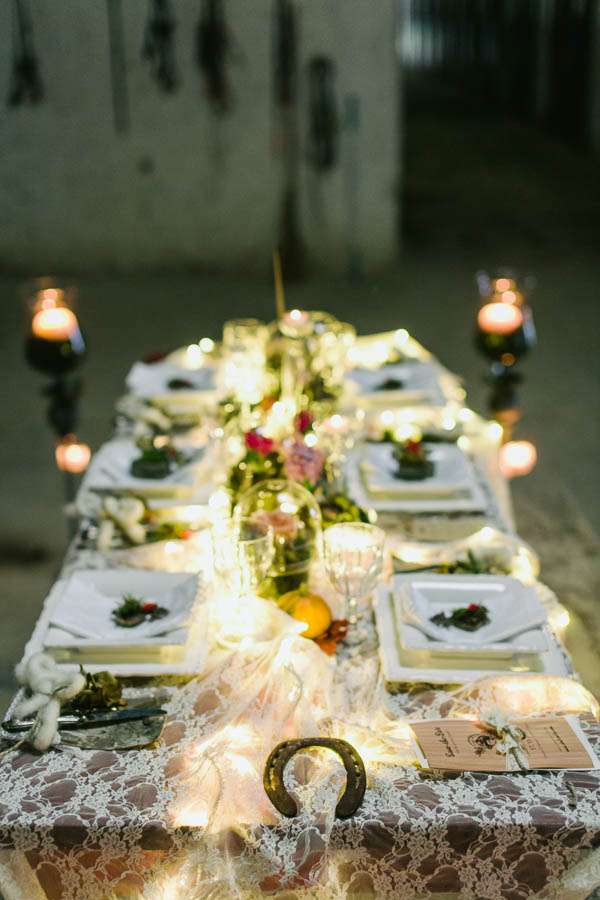 “Unfortunately it rained on our shoot day and so we were unable to do much outside like we’d planned, but the cold and rainy weather did allow us to get creative inside the stable. I think everything turned out to be even more romantic and intimate because of this!”