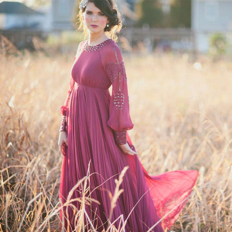 “The main inspirations for this shoot were the gorgeous gowns (mostly vintage!) and my desire to incorporate some unexpected elements into the styling”, explained shoot stylist Jessica Santos Gallo of Fine and Fleurie. “Some of my favorite elements were the hand-crafted antlers and the bold-yet-boho cranberry gown.”