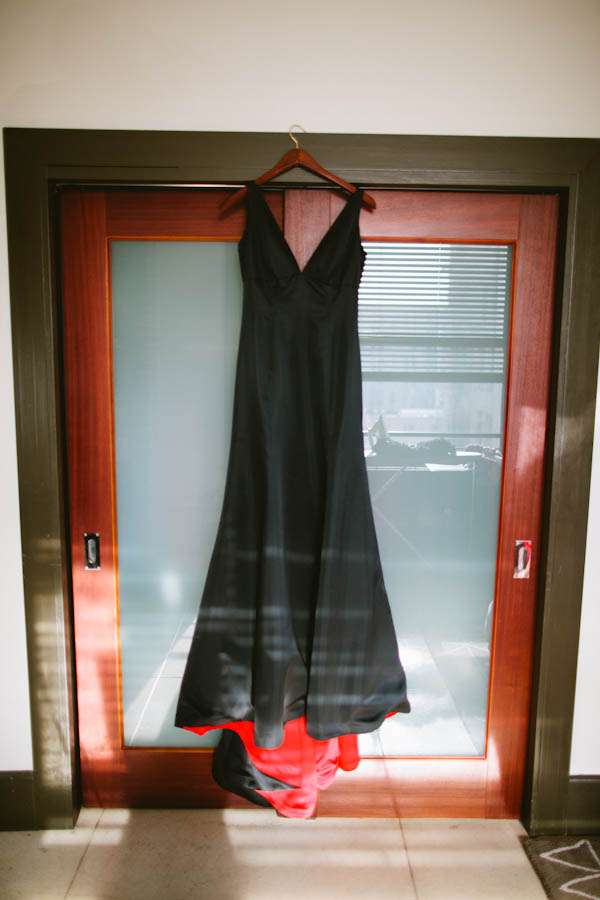 Although the couple didn’t want a purposeful colour scheme, Megan opted for a dramatic black and red wedding dress and these colours continued subtly through a few other key elements. “Our ‘theme’ was definitely accidental”, she explained. “We never gave any thought to a theme other than the two of us but red and black ended up emerging.”