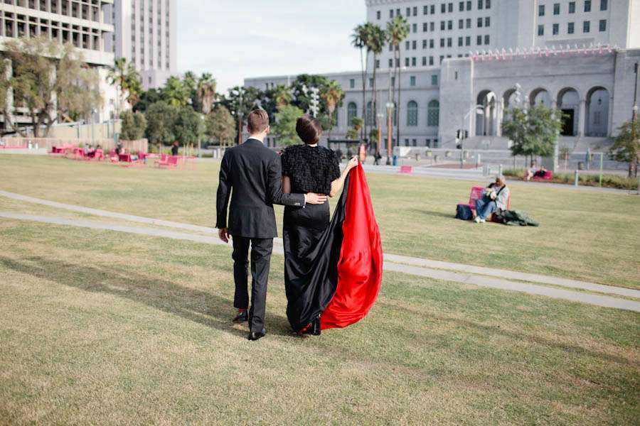Megan & Chris, who met through the online dating website OKCupid, were married in LA. They chose The Chapman, located downtown, for the venue. Their ceremony took place on the roof and the reception was held in Los Angeles Brewing Company, which is located on the first floor.