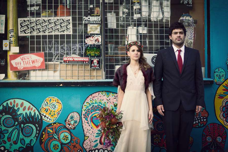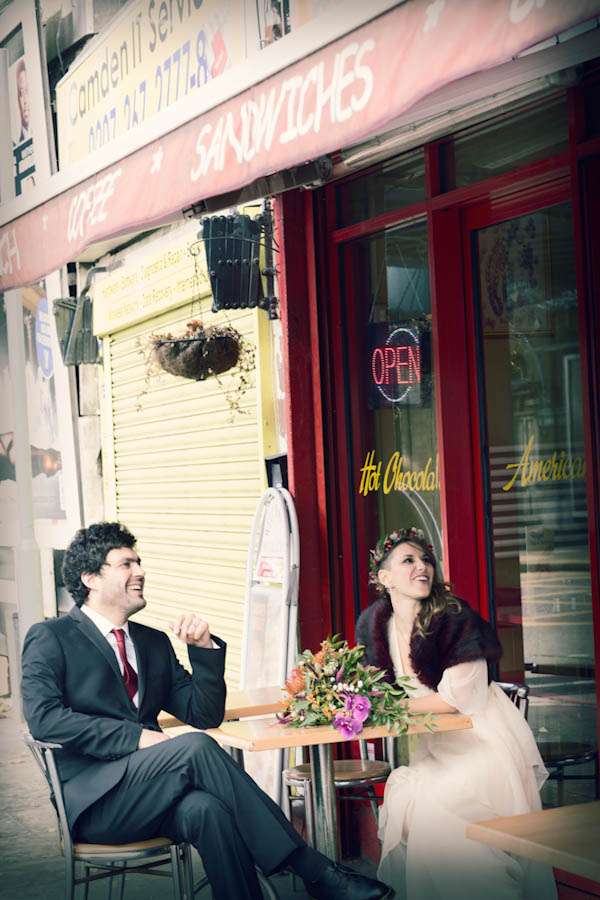 Karolina & Juan’s London wedding was informal and laid back but also reflected their multicultural heritage. The ceremony was held at Camden Town Hall, with the reception taking place at The Prince Albert pub, also in Camden. Karolina wore her Mother’s wedding dress from the 1970s and a floral wreath in her hair.