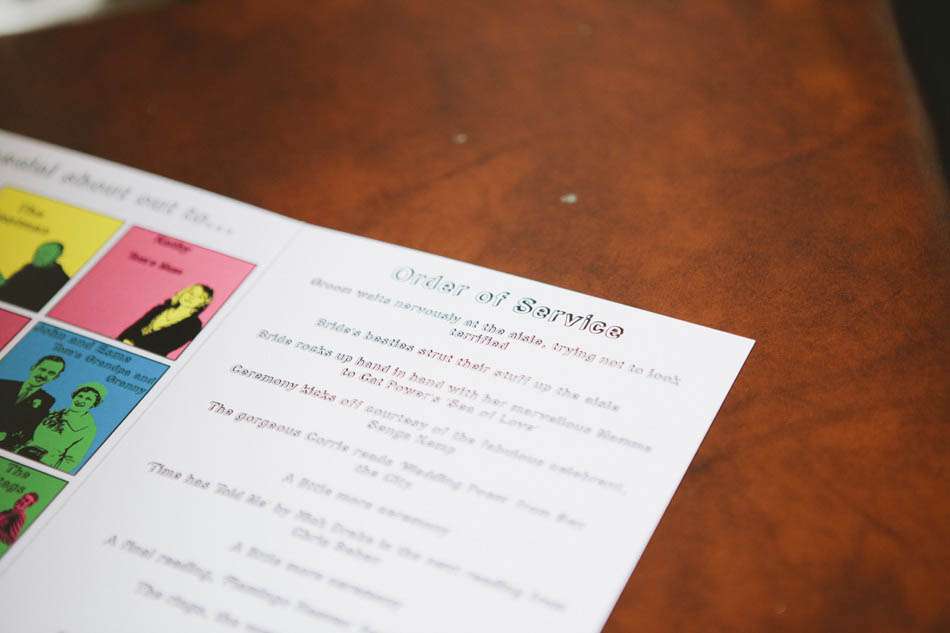 “As a couple, it’s fair to say we can be polar opposites at times. Besides the fact that I’m Scottish and he’s English (a pretty significant difference when it comes to weddings), tattoos, flamingos and Biffy Clyro top my favourites list, whilst graffiti, robots and Jurassic Five are more up Tom’s street. So on day one of ‘project wedding’ we had a jaunt to our favourite bar and, over a cold beer (one of our few shared hobbies) we compiled a list of all the things we wanted to try and incorporate into our big day.”