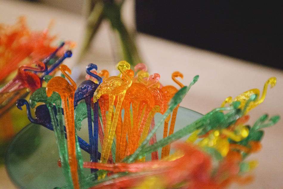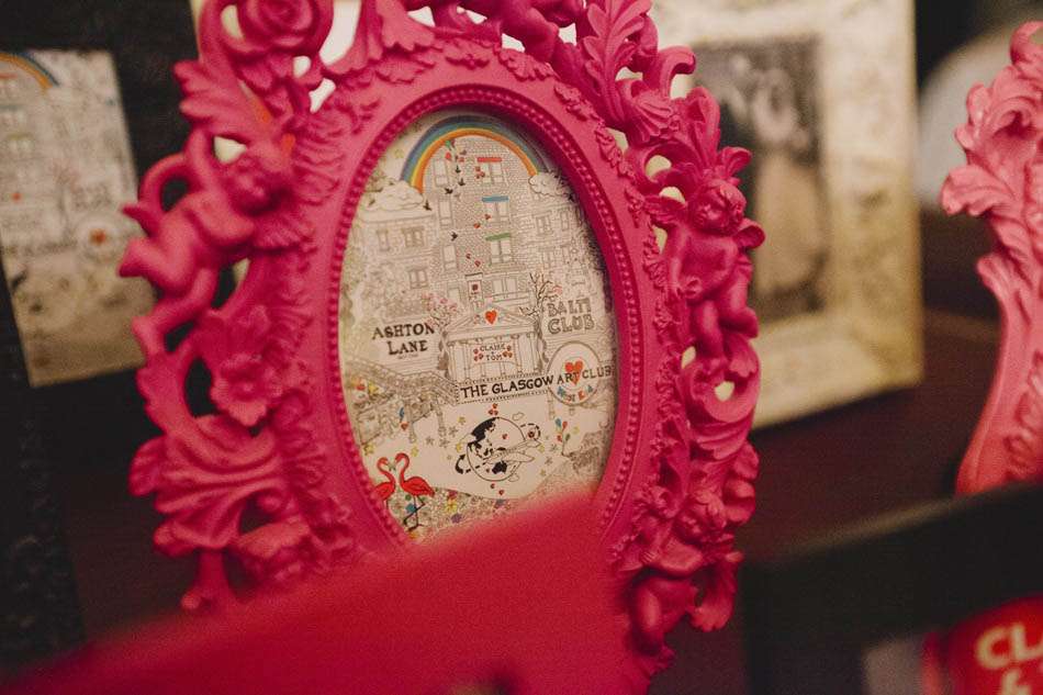 “Approximately 80% of that list featured in the proceedings, some in a big way (flamingos) and others less so (skulls), but more than anything we wanted to create a frivolous, imaginative backdrop that would feel like an extension of us as a couple and in turn help everyone have fun. The team at Glasgow Art Club couldn’t have been more supportive in helping us bring our ideas to life, and thanks to an overwhelming amount of support (over endless pots of coffee chatting through every option and minute detail with the ever patient manager Naoimh), the venue was transformed into our very own enchanted world for the day.”