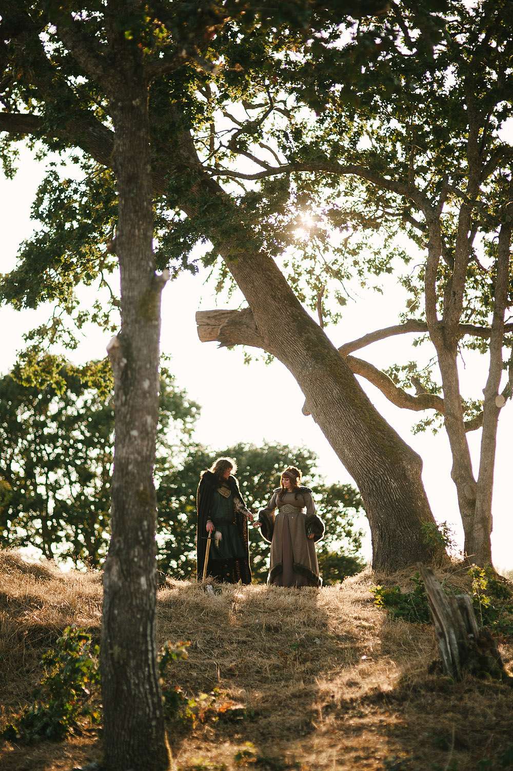 “What Karlee left out of her emails was that she had created outfits (on her own) and wanted a Game of Thrones themed session. So, Karlee & Justin had feathers, leathers, furs, badass belts – you name it, Karlee had dreamt up the entire session and designed and created everything. When we saw them dressed as they were, we joked that they would probably pull a sword out of the trunk of the car. Sure as hell, they pulled swords out of the trunk of their car. The session was awesome, because it was totally ‘them’. They wanted a memorable session that suited their personalities, and they definitely made it happen.”