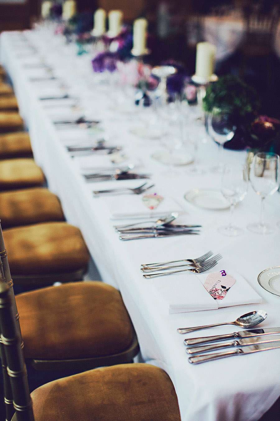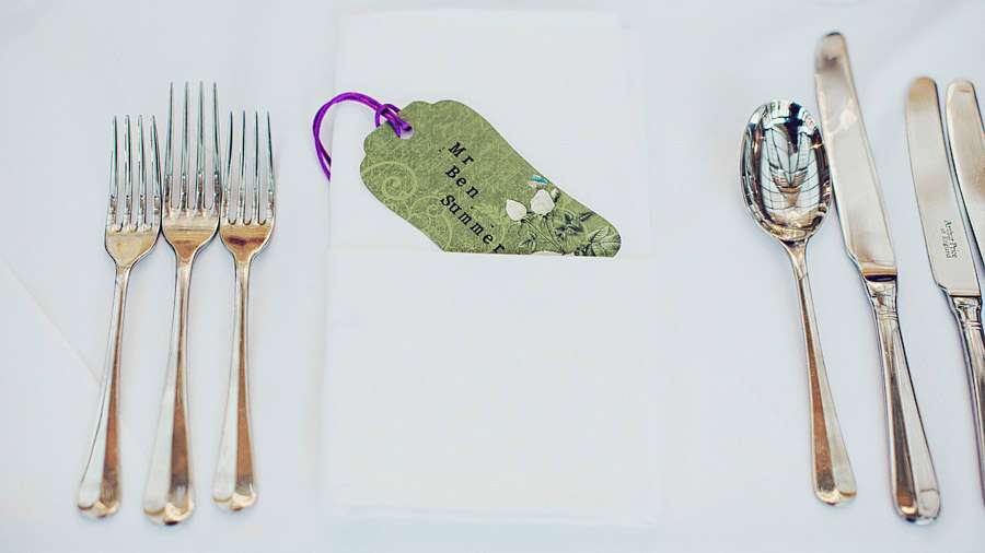 “The amount of things that were suggested in wedding magazines about what you should do and what you are supposed to have made planning overwhelming. So I stopped looking at wedding magazines, and instead of using suppliers for everything I tried to do as many bits myself as I could. The favours were jams made by me from fruit that I grew in my garden. We created the save the dates ourselves, with help from my sister, and I made the invitations, the table plans, the place settings with help from my mum, sister and bridesmaids.”