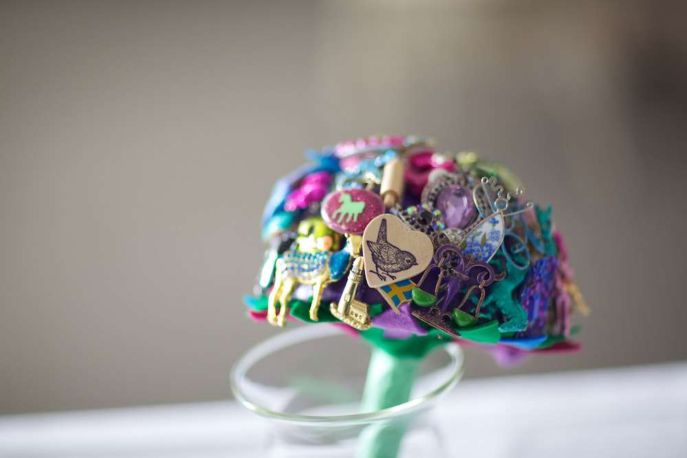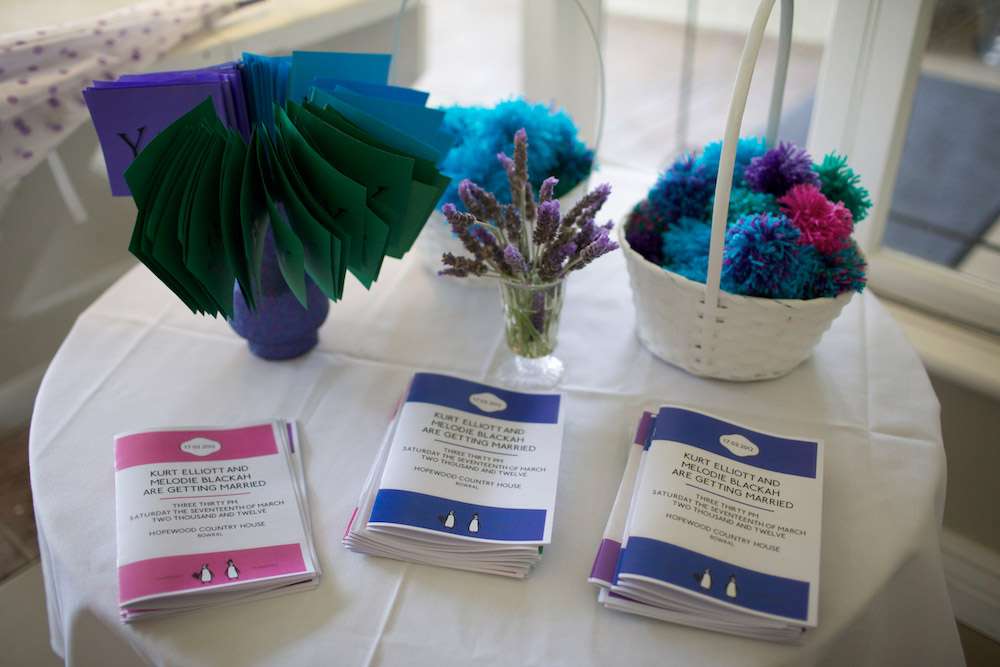 “We DIY’d so many different elements of the wedding, from the bouquet which Kurt and I made using brooches, wire, pliers and felt, to the cake topper, which I made the day before the wedding in a rush. Our programs were obviously based on penguin books and the heart ceremony backdrop was made by Kurt. We really wanted to hand make as many components of the wedding as we could, because we love making thing and loved the rustic DIY look. It was also a fun way to bond and hang out with each other, friends and family before the wedding.”