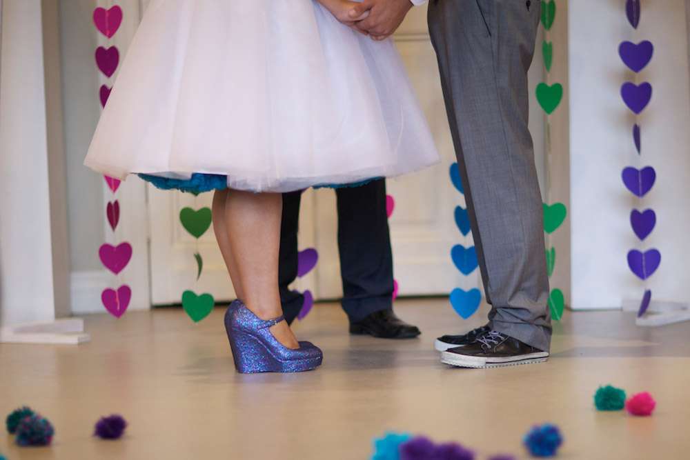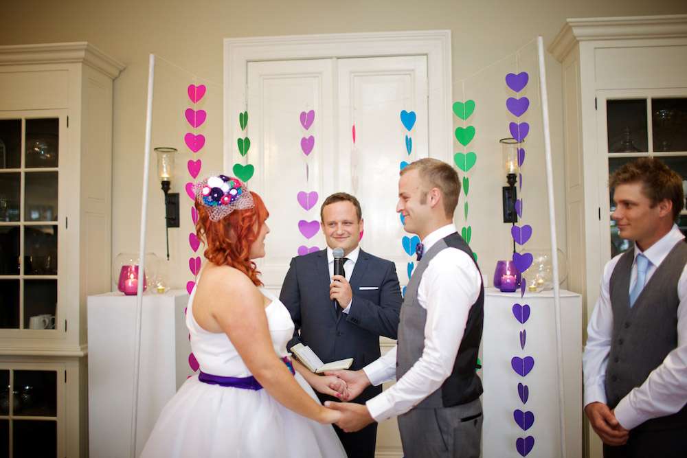 The colourful wedding of Melodie & Kurt was held at Hopewood Country House in Bowral, New South Wales. The bride designed her own wedding dress and glittered up her own shoes but the DIY didn’t stop there – friends and family of the couple got stuck in wherever possible!