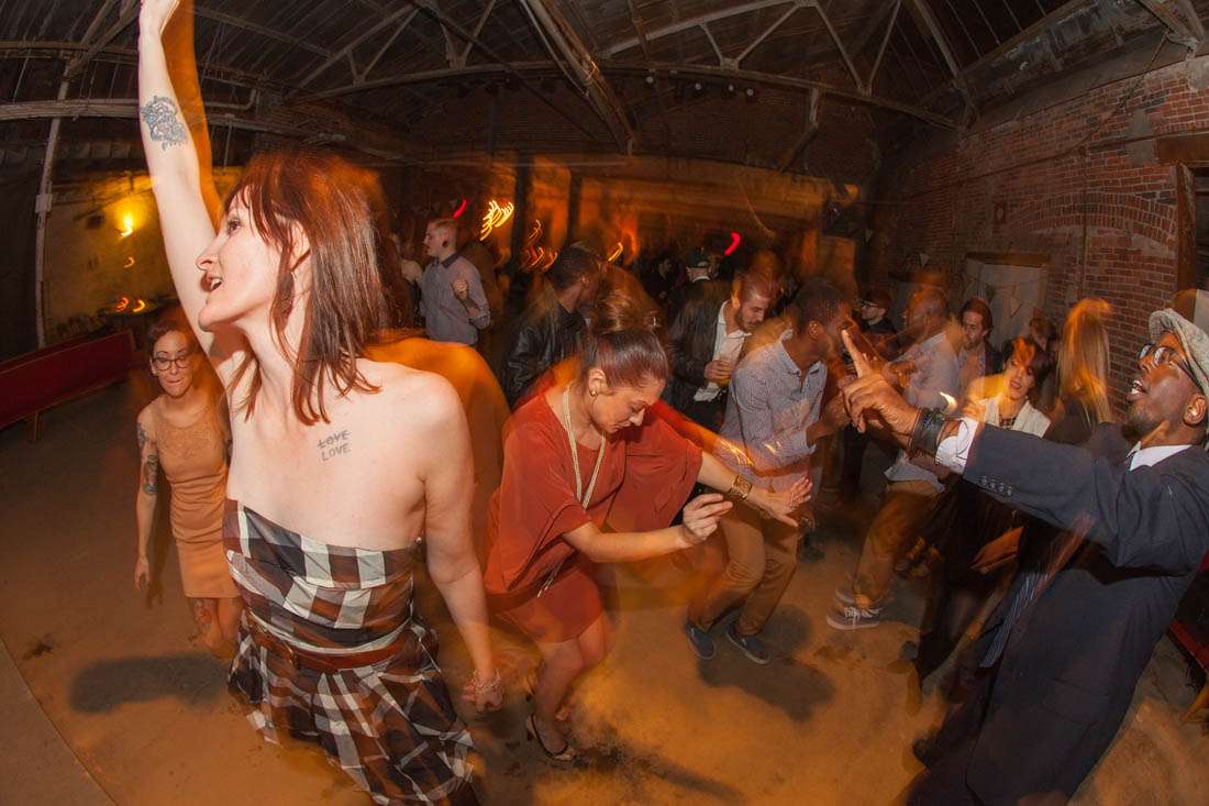 “We wanted a very organically flowing wedding. The ceremony was short but personal with personal vows”, they continued. “The space we used for our wedding was an old factory that is being converted into artist studios. Being so DIY minded, it just made sense to use it and create a warm welcoming environment on our own. Being vegans and experiencing some bad catered vegan food options at weddings we knew we did not want to depend on a caterer to make the food. Instead we did it all ourselves with help of friends. We are talking 400 tamales, 100 ‘chicken’ wings, 300 cake pops… We also had the majority of our friends and wedding party involved in doing something to help out. We know people in bands, people who are DJs and bartenders. Everyone volunteered their time and took turns helping out and partying!”