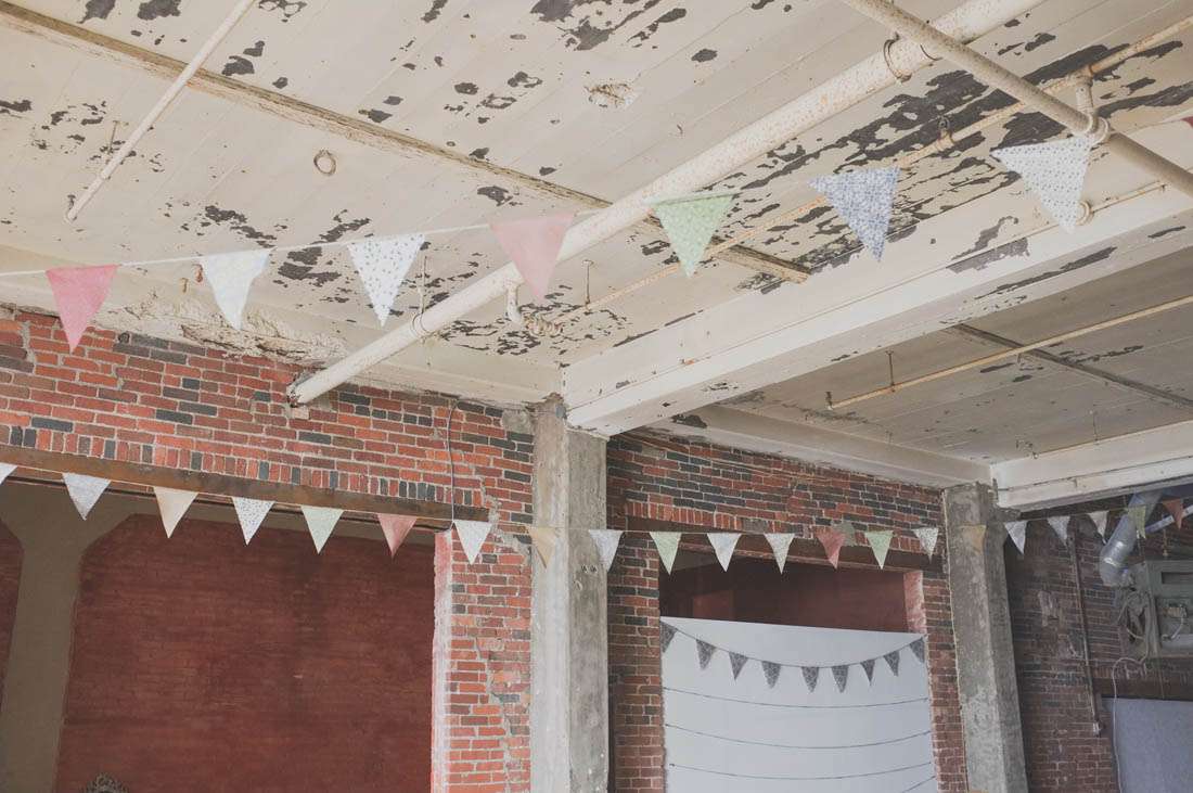 “Pinterest was super helpful but over time just became so overwhelming. There are just so many ideas! We used the same room for both the ceremony and the reception. We had bunting and pews to establish an aisle and then after the ceremony we moved them to the side and opened the room up. We used needle point hoops with stretched fabric inside to hang around and had mason jars decorated in lace, twine and spray paint for the candles which became centrepieces.”