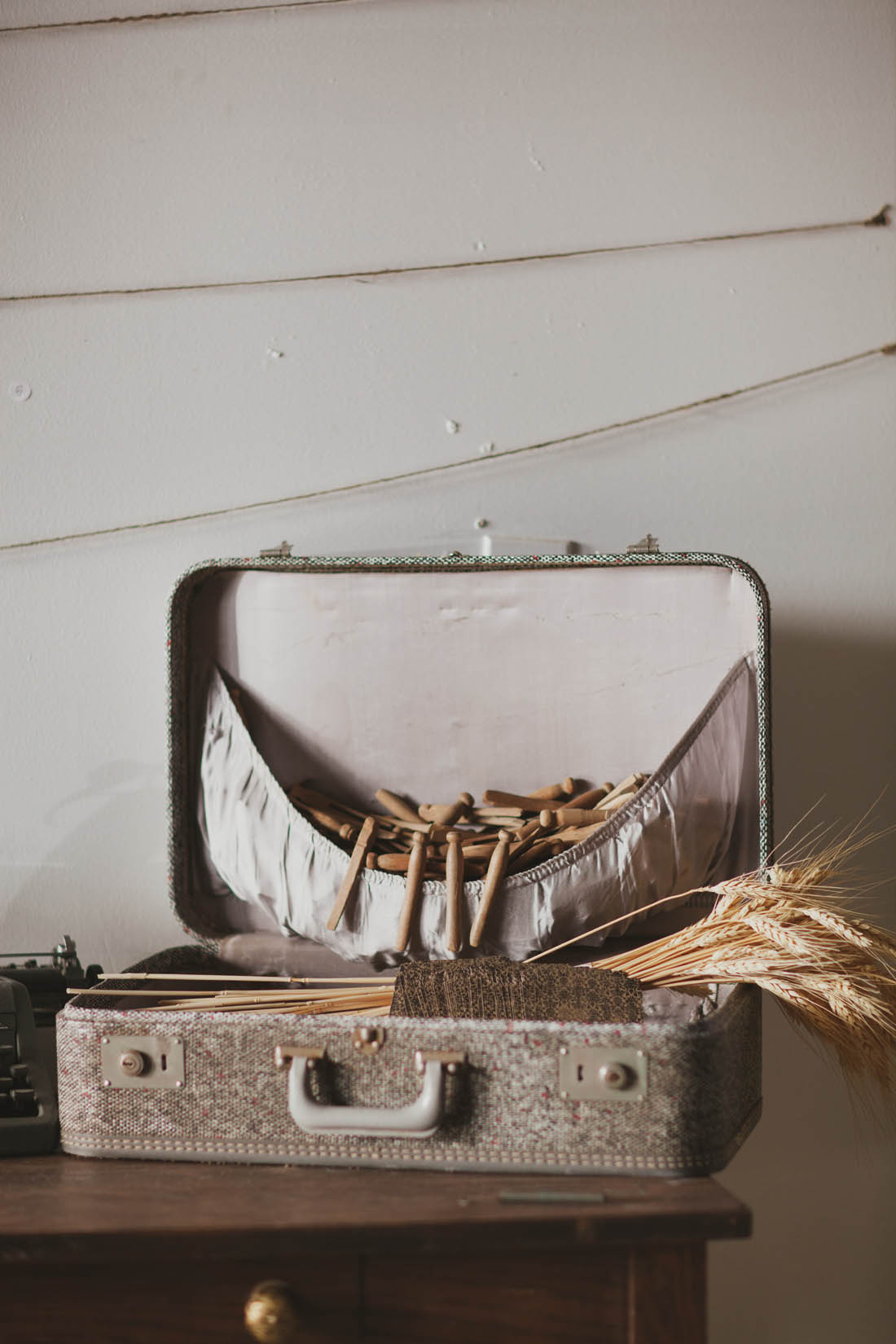 “Our theme was ‘reclaimed and revisited’. We love thrifting and finding unusual items and having them in our home. We wanted to bring our home into the space and make it comfortable for ourselves as well as share who we are as a couple. We also made our own candles which was one of our favorite elements in the wedding. The candle scent was very important. We spent a quiet night together developing exactly a scent that represented us and something that people would associate with the night. The scent was woody sweet with a subtle musk to it.”