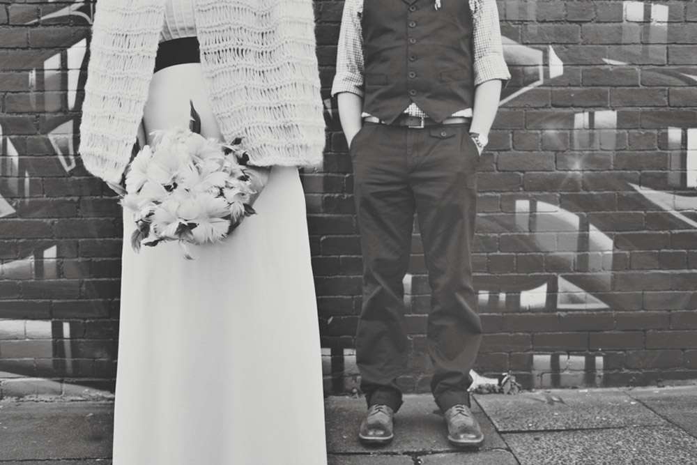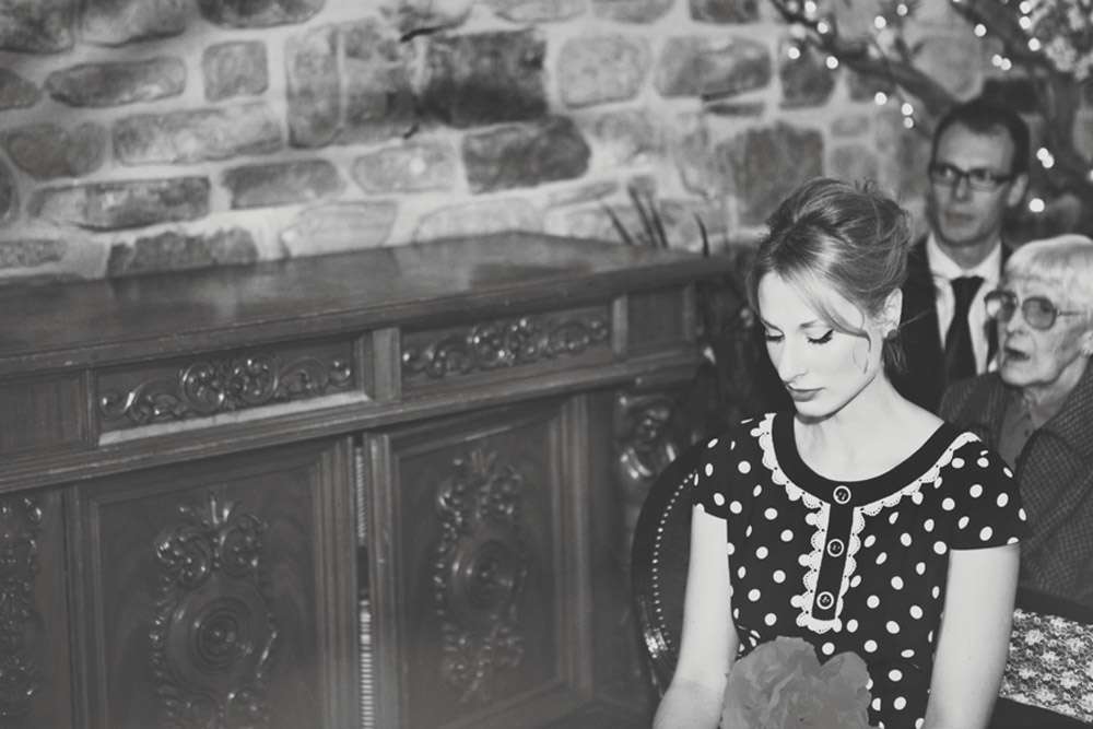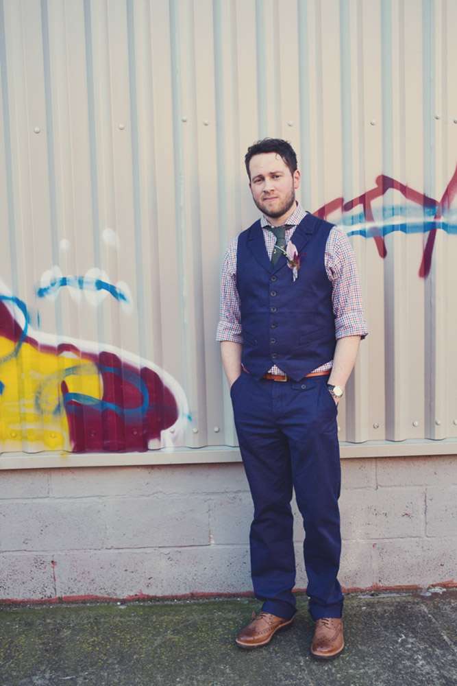 Wearing a vintage dress from eBay and a Topshop mini lace dress in the evening, Josie carried a vintage feather bouquet that had belonged to her mother. Her bridesmaid wore dresses from Hobbs and carried homemade crepe paper bouquet. Her groom was decked out in an Oliver Spencer suit.