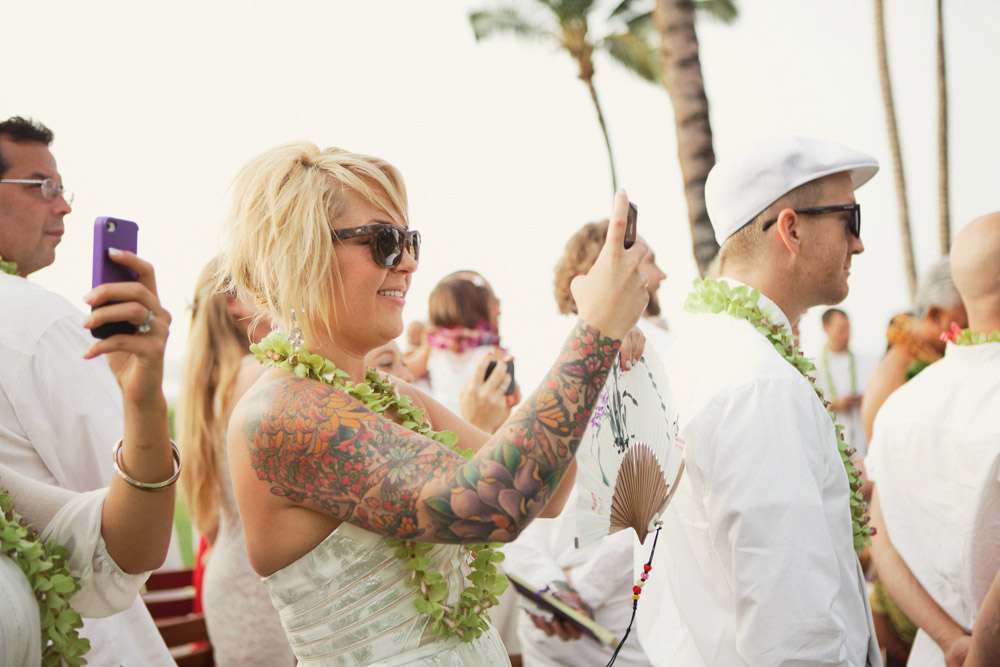 “We wanted a white wedding”, Sherra explained, “so we asked our guest to dress in white. I feel that made the backdrop of Hawaii so much more beautiful and intense. Everyone looks good in white.The Rock n Roll element definitely came from the groom’s party who are actually a part of the Rock n Roll world. Most of our guests are somehow linked to music, whether they themselves are rock stars, they work in the industry or just have the love of rock living in their hearts.”