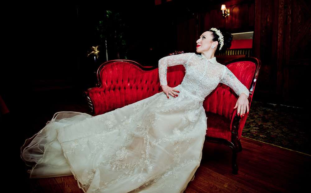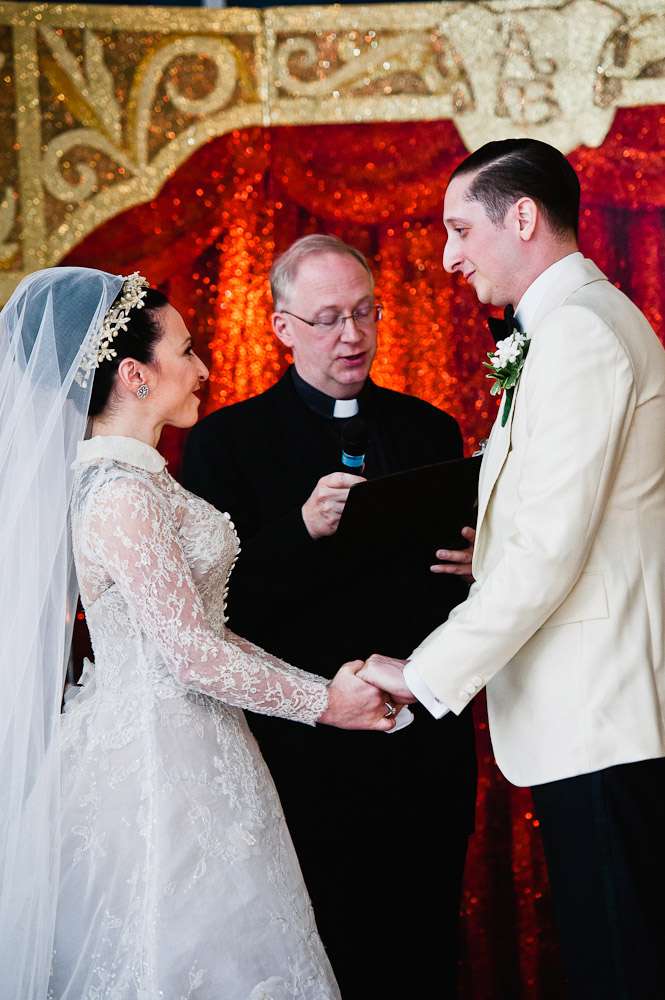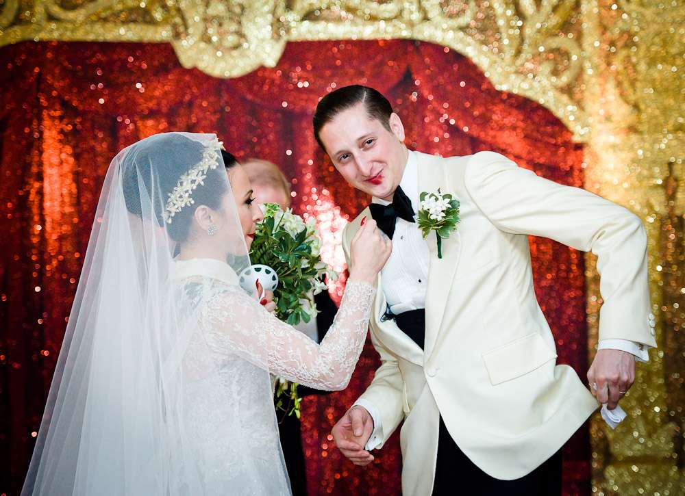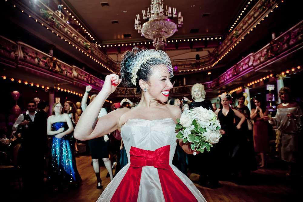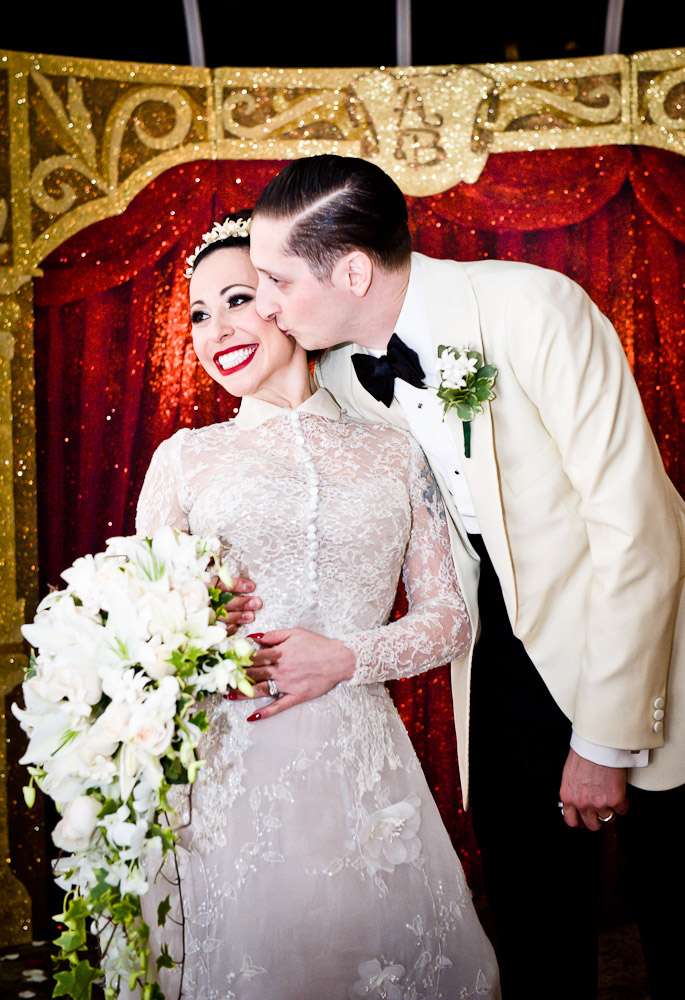 With a penchant for all things glamorous and retro, it was no wonder that Angie & Brian had the wedding that they did. The bride, a burlesque dancer, and the groom, a jazz trumpet player for Lady Gaga, wanted a day that truly reflected the things that they love. They didn’t just want to plan a wedding – they wanted to put on a show! The wedding was held at Grand Prospect Hall, Brooklyn.