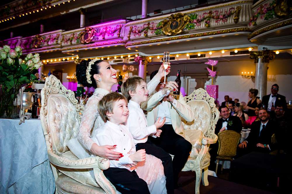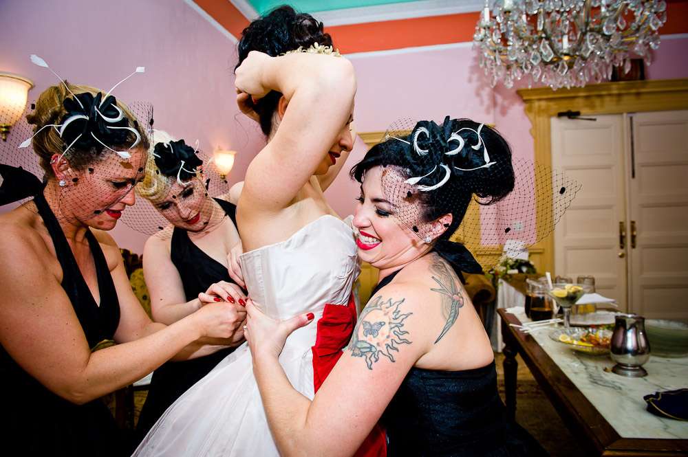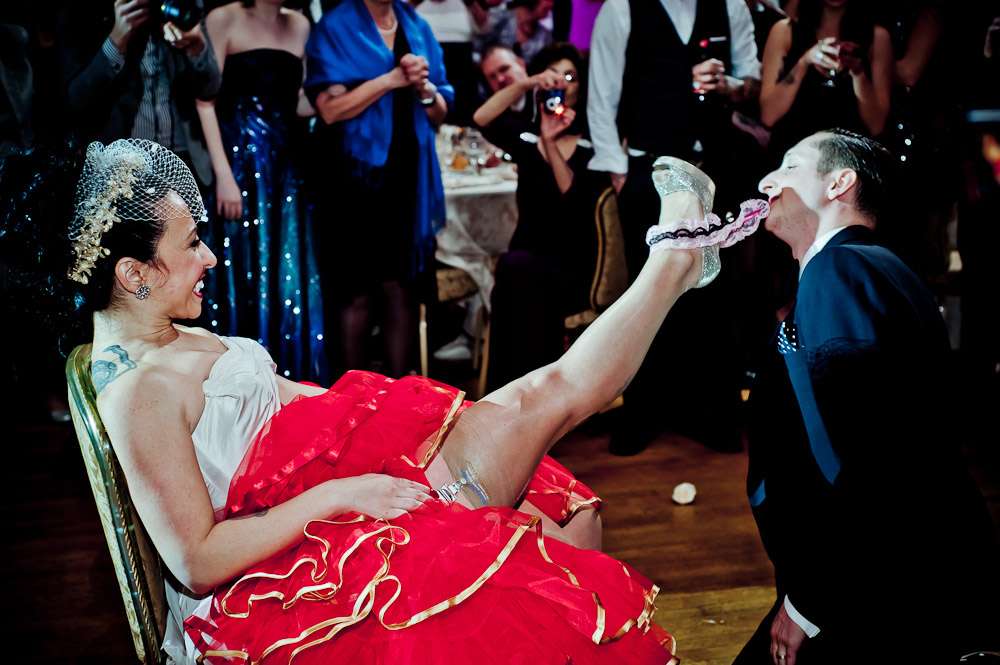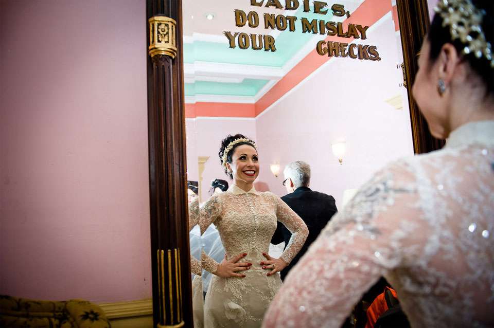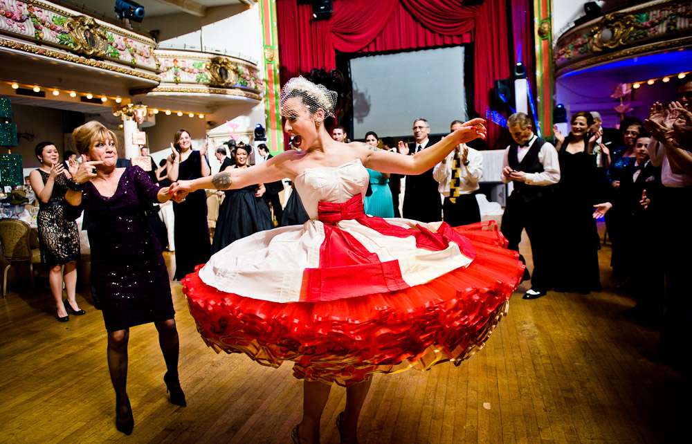 With a penchant for all things glamorous and retro, it was no wonder that Angie & Brian had the wedding that they did. The bride, a burlesque dancer, and the groom, a jazz trumpet player for Lady Gaga, wanted a day that truly reflected the things that they love. They didn’t just want to plan a wedding – they wanted to put on a show! The wedding was held at Grand Prospect Hall, Brooklyn.