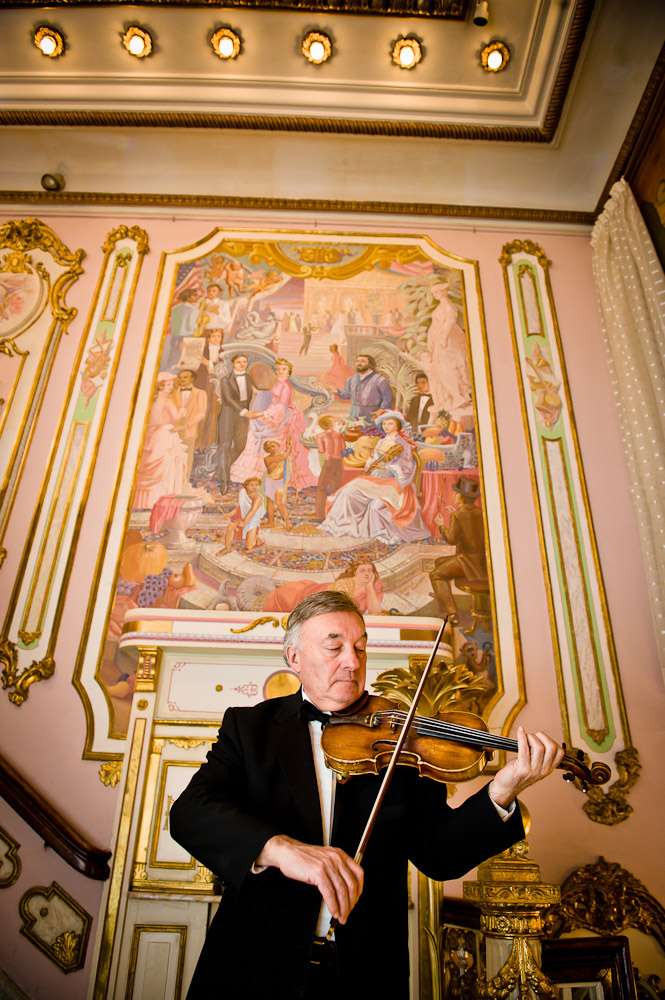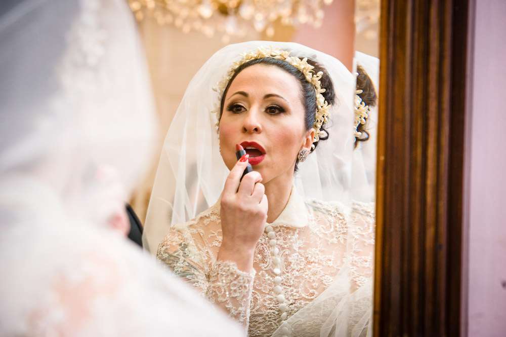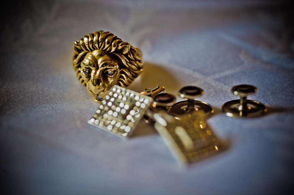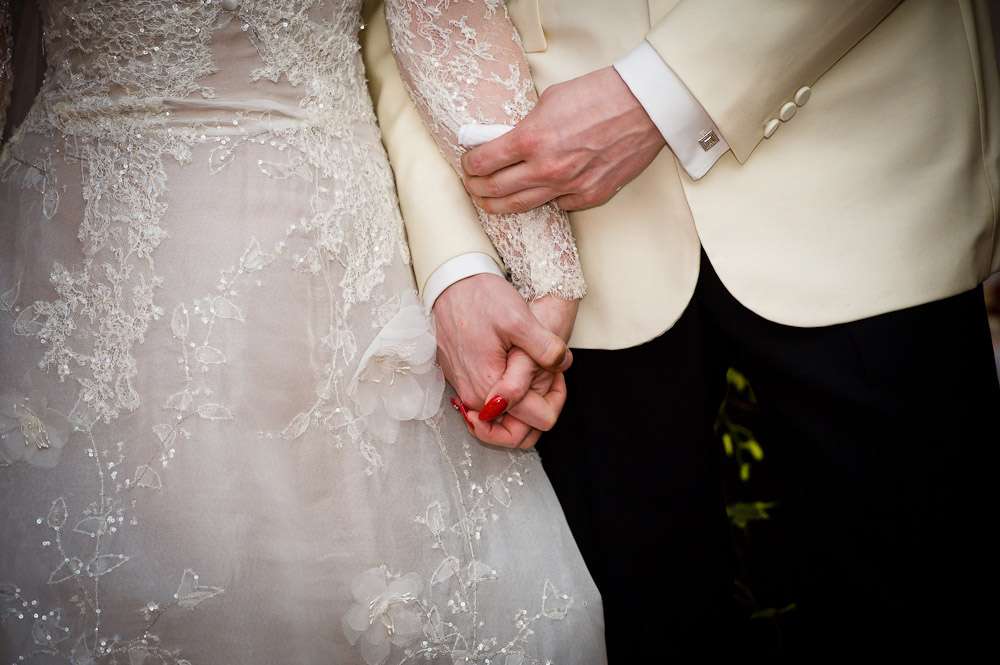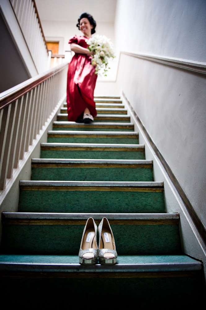 Angie wore two wedding dresses. An elegant 1920s inspired gown from Elie Saab and a flirty number for the party by Garo Sparo. Her shoes were Jimmy Choo and her headpiece and jewellery were vintage. Brian wore a bespoke suit from Craig Robinson.