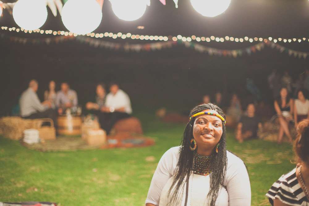 “My bridesmaids and I spent the year sewing 120 metres of bunting”, Demi concluded when I asked about the homemade décor “My mom made our ‘las-lappie’ blankets. We used tins, prettified with material and ribbons as holders for straws and cutlery. We bought many glass jars in different shapes, sizes and colours from hospice shops to put our flowers in . We also had games for our guests to play while we were having our photos taken.”