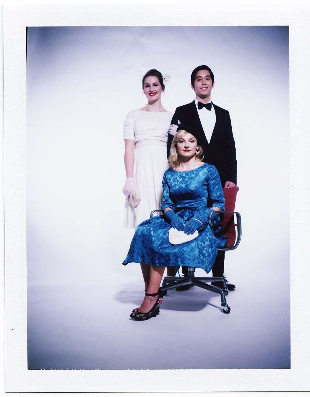 “We’ve added three cameras, a Polaroid SX-70, which shoots the new Impossible Project film, and two Fuji Instax cameras”, Stephen explains. “Because this was going to be a studio shoot, we really felt free to play and have fun, so we decided to shoot a vintage bride, wearing authentic 1950s and early 1960s outfits. Our inspiration came from looking at a lot of original advertising from the Mad Men period. We re-used several period poses and compositions, and for about 12 hours only, it even became permissible, in fact obligatory, to smoke on set. We took multiple shots of the same pose using different cameras and film to demonstrate the variety of looks that are achievable with the instant film available today.”