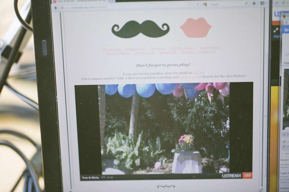 “The main inspiration for our wedding was my dad”, Nicole wrote. “We actually weren’t planning on getting married until 2013 but when my dad got sick, we decided not to wait and planned it all in three weeks. We had it in my parent’s backyard so he didn’t have to travel anywhere and it made for a nice backyard venue. Because he was so sick, we didn’t want to bombard him with all of our family and friends flying in so we came up with the idea to stream the wedding live on the internet for everyone to watch. We had our guests take pictures of themselves watching our wedding and they did fun things like dress up and drink champagne and such. It turned out fantastic and my dad was actually able to walk me down the pathway.”