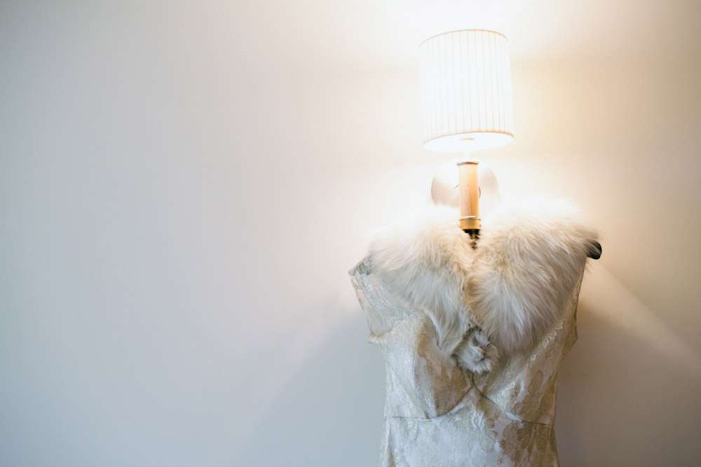 - Bride's Dress, Accessories & Headpiece: Fur Coat No Knickers