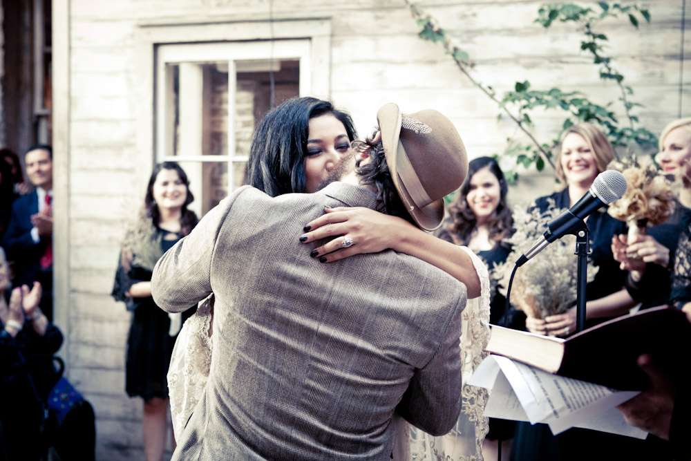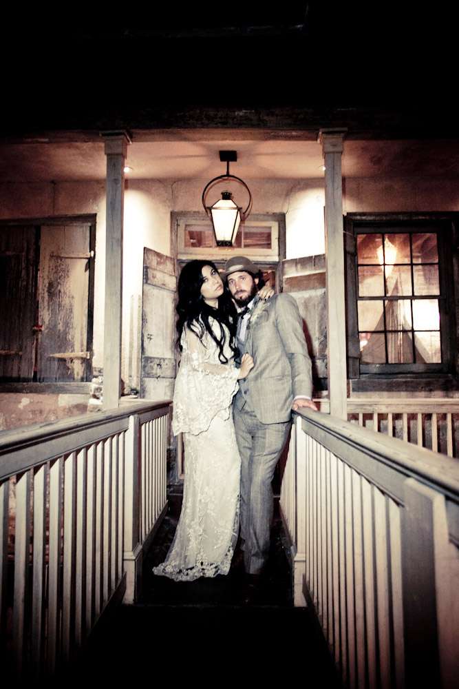 “We wanted to create a unique wedding and a fun celebration!” began Leslie. “We have been together for 12 years. I met Collin when I moved to Houston from California. Since the day we met, we have not been apart! We currently live in Houston, TX but often travel to New Orleans, and we decided it would be a great city to have our friends and family from all over the states and Mexico to come visit! We love anything vintage, antique, rustic, circus, masquerade, old films, vaudeville… so that was our theme for the wedding. Our guests were a mix of high school friends, fashion industry friends and both of our families. We did a lot of DIY and involved our families and friends to help us as much as possible.”