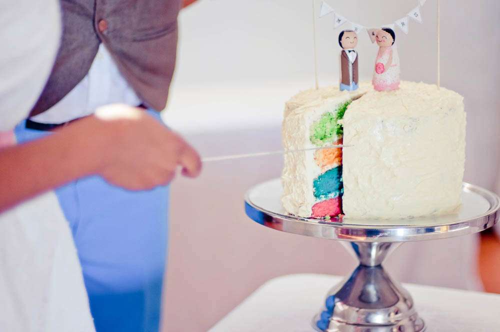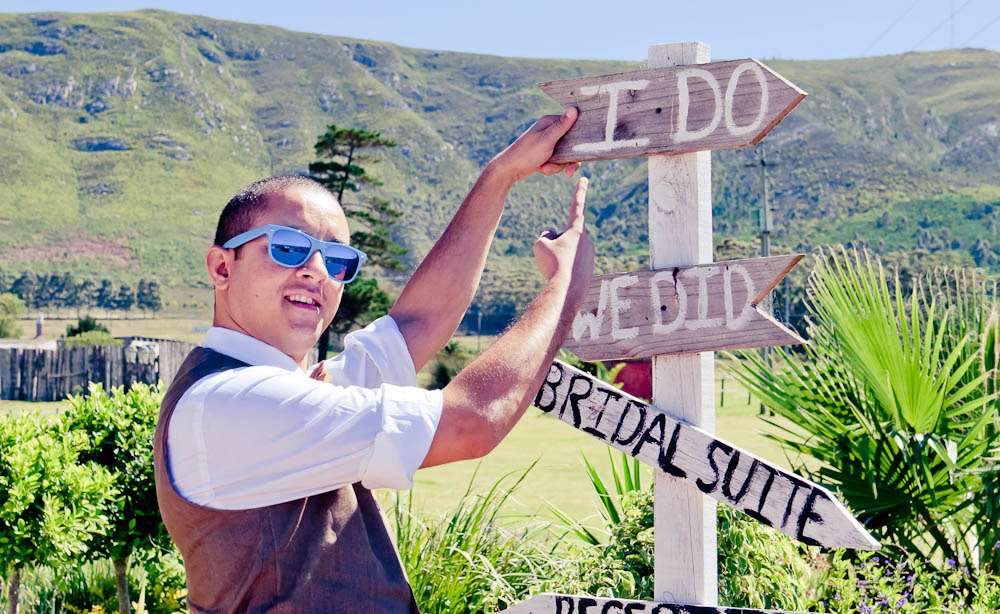 For their March wedding, South Africans Angelo & Candice wanted a colourful day that oozed fun…so a rainbow theme it was! “Angelo and I are generally out of the box thinkers and the ‘same old same old’ wedding décor was not what we wanted”, began the bride. “We knew we wanted colour and fun and we went from there. There were a few elements I needed to ‘sell’ to my parents but they went with most of my ideas (thankfully). Angelo and I are both involved in film and TV (Angelo is an actor and I am a Junior Creative Producer) so a strong film element had to be prevalent in our day. We had popcorn holding up our table numbers and a picture of a clapper board on our invites.”