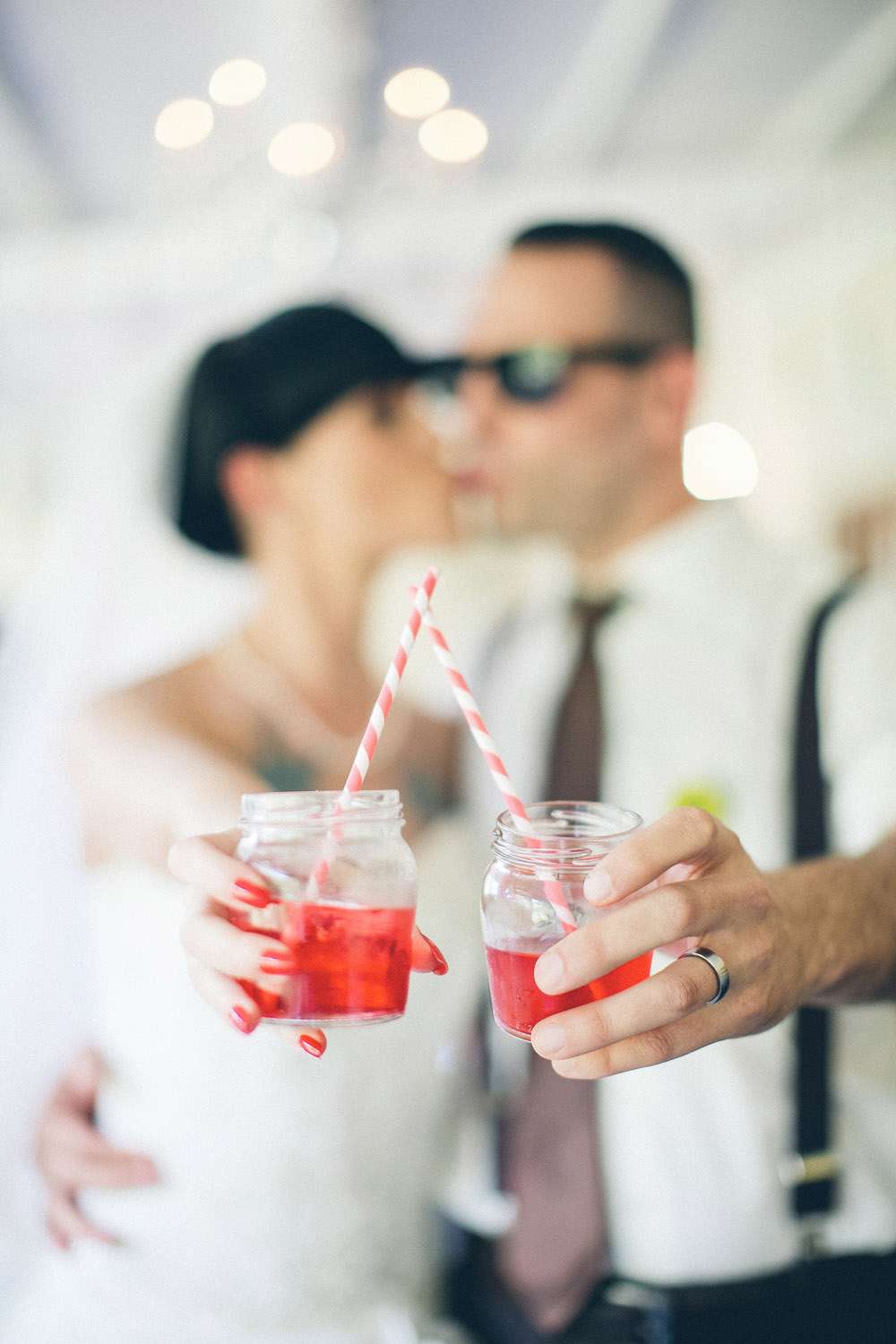 “Our guests relaxed under the gorgeous trees while sipping on cranberry juice and vodka through candy striped straws from little jam jars and munched on traditional biltong and peanuts”, she continued. “Again, we had so much fun with the photo’s as we didn’t want the usual posed pictures from standard bridal magazines – we wanted them to be an eternal representative image of the fun we had had planning our wedding.”