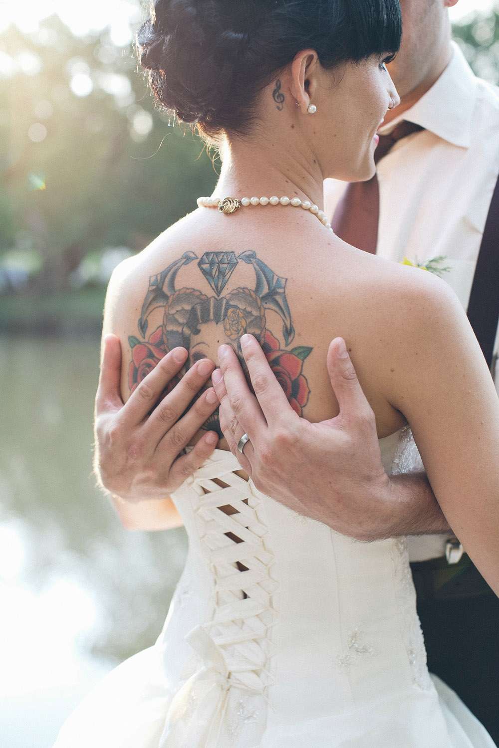 “We try not to take ourselves seriously and so when it came to tying the knot after a year of engagement bliss and totally stress-free planning, we knew our day would be filled with the people and things that reflected our separate personalities and us as a couple. We chose a beautiful venue off the trodden path of wedding venues in the Muldersdrift area of Johannesburg, which could not have been more perfect for what we had envisioned for us. Since we are of different faiths (my husband is Jewish and I am Catholic), the little quaint brookylaced gazebo, complete with bunting, on the edge of the picturesque dam was absolutely ideal for the intimate ceremony. We had it performed by a non-denominational minister in the presence of our immediate family and closest friends.”