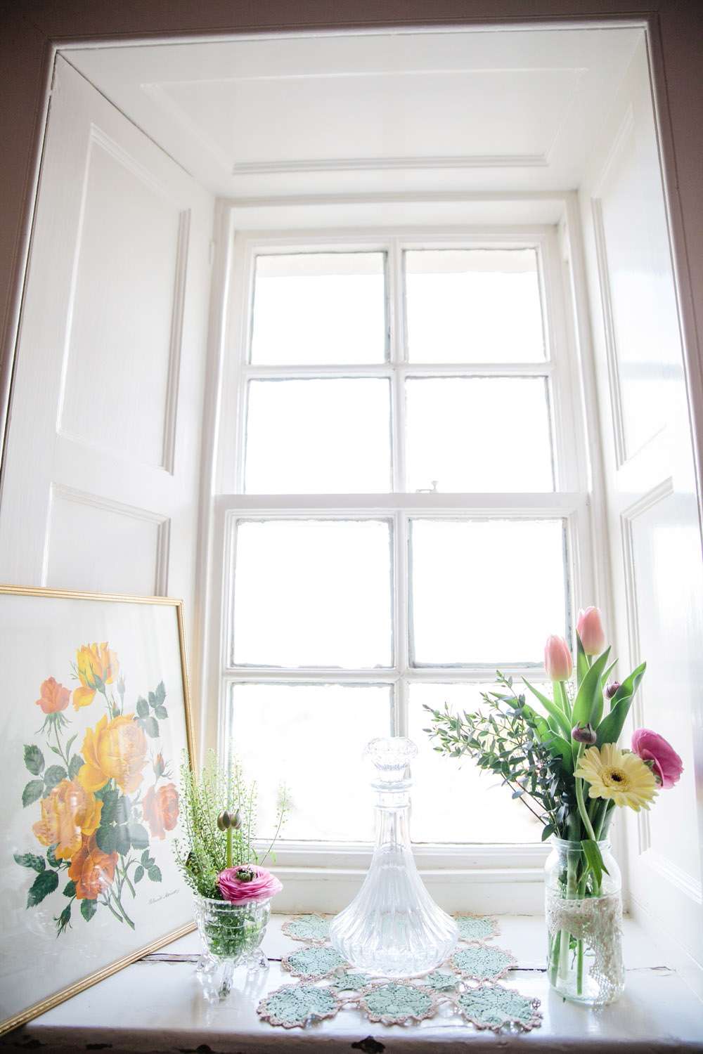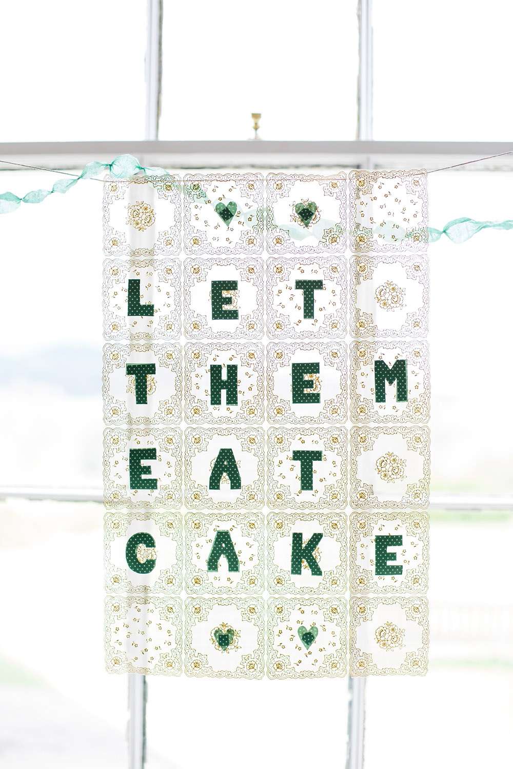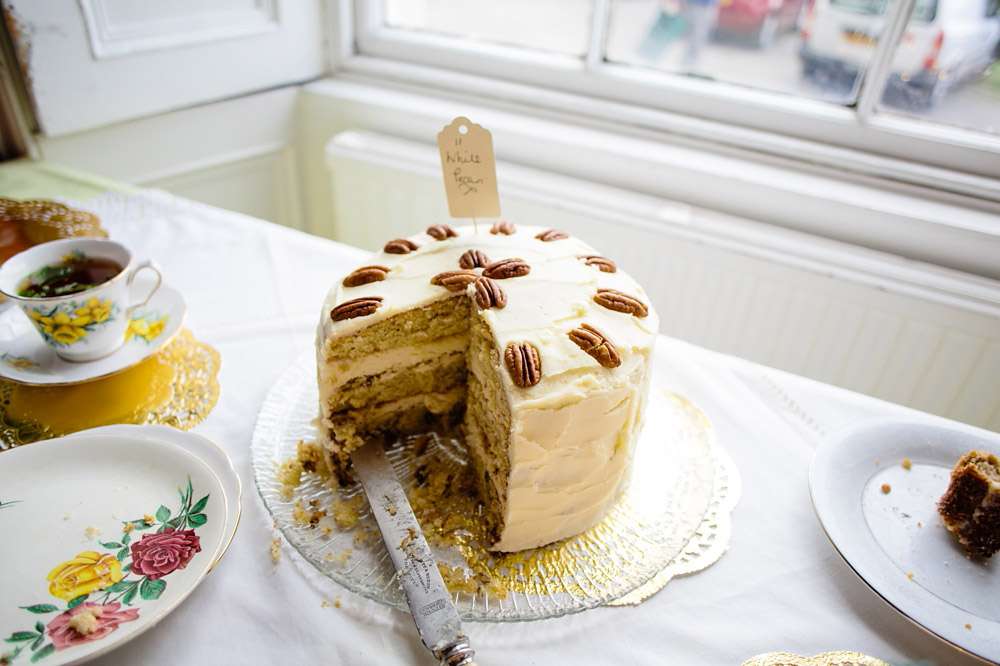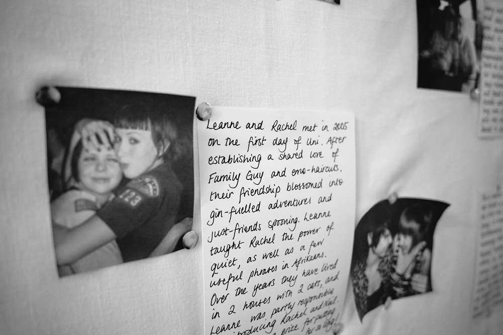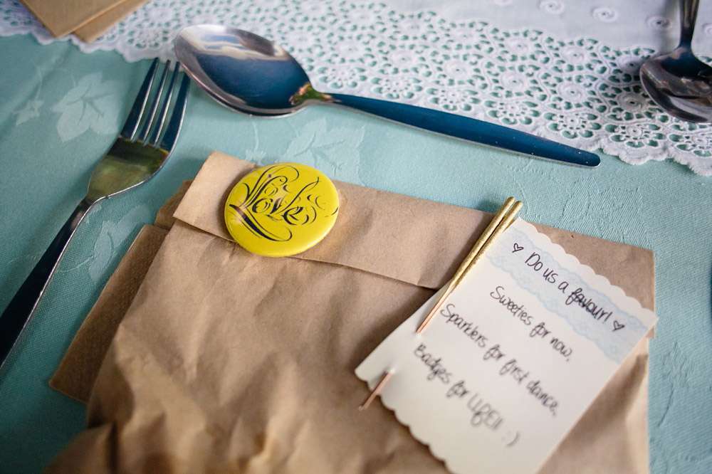 “Some of the most effective things we made were probably the most simple – crepe paper streamers, heart paper chains (these were Neil’s speciality!) and doily bunting (just folded and stapled onto fabric tape). We found a nice free font and used it in the invitations and on all of the stationary on the day. My absolute saving grace was a selection of fancy-patterned edge scissors – considering I have never been able to cut a straight-line free-hand these came in very handy. Everything looks better with a fancy edge! I also had loads of fun covering jam jars with gold glitter (not the best idea to do this in the house, although the living-room carpet looks better with a bit of added sparkle). We’ve kept a lot of the decorations and incorporated them into our home so we have lots of lovely reminders, and it made all the work seem a bit more worthwhile.”