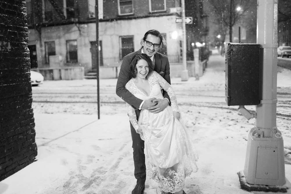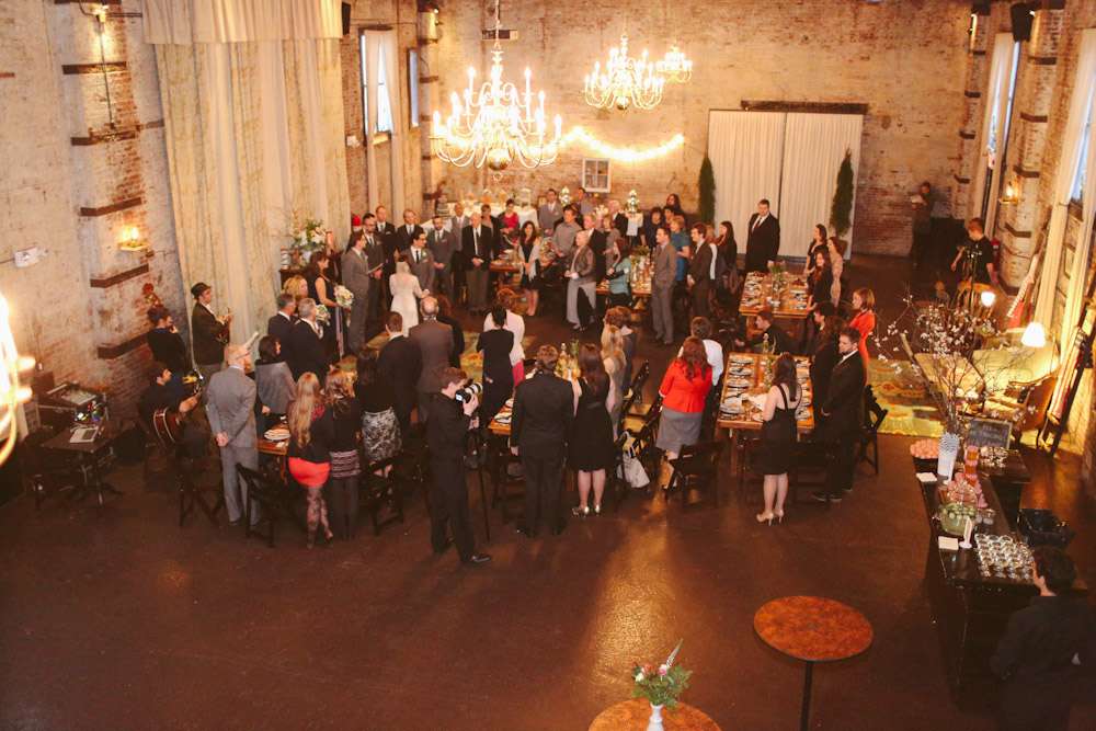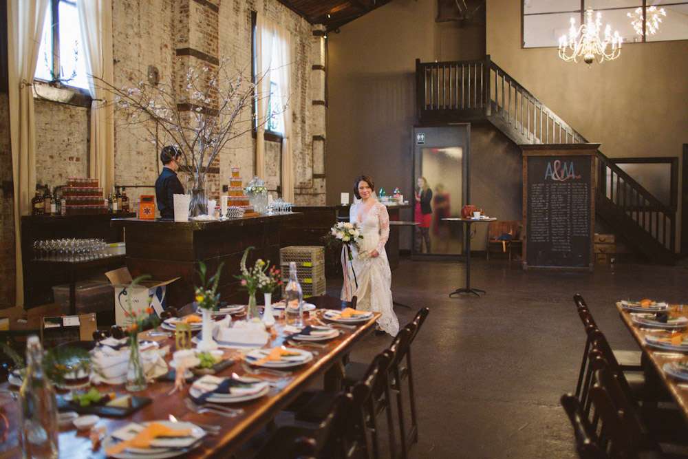 “We actually never wanted a city wedding – we always talked about getting married out in the middle of a field in the county somewhere”, she continued. “Unfortunately, we were too impatient to get hitched and heated fields are hard to come by in February in Upstate New York, so… Brooklyn it was. Luckily, we were able to get a last-minute, off-season, week-day rate and that helped us afford it. And since we ended up having a blizzard on our wedding day, it was a good thing that we were in a location where public transit could assist our guests!”