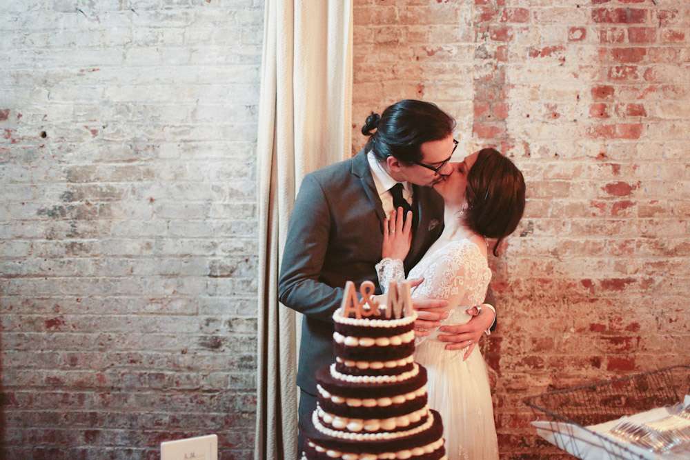 Alison and Michael were married at The Green Building in Brooklyn. They got together after chance meeting at Kate’s Paperie in New York, a Craigslist ‘Lost Connection’ that actually worked and a long online relationship. After finally getting together and then getting engaged they planned the wedding in just three short months.