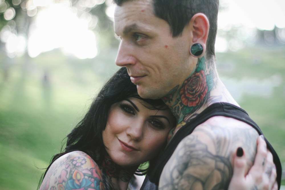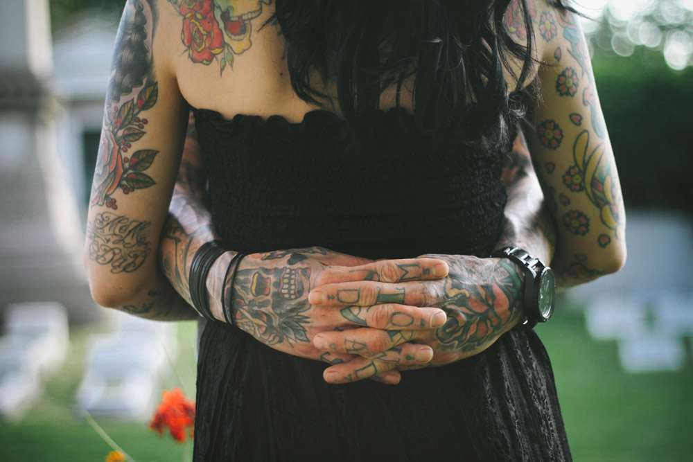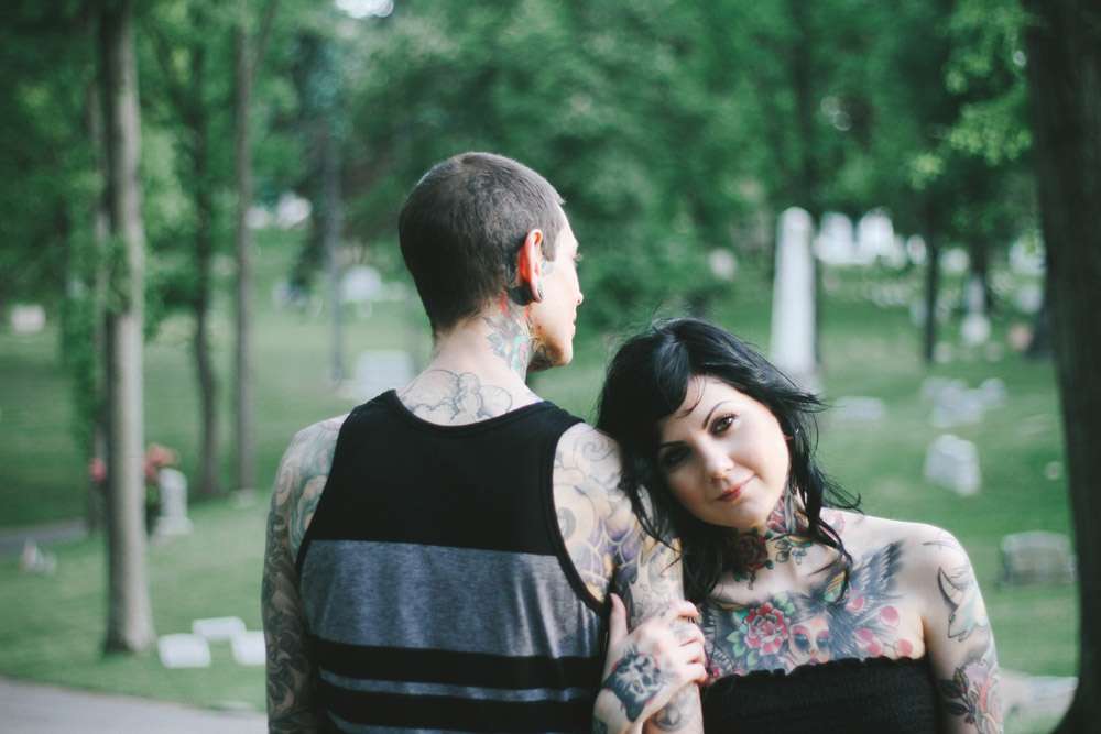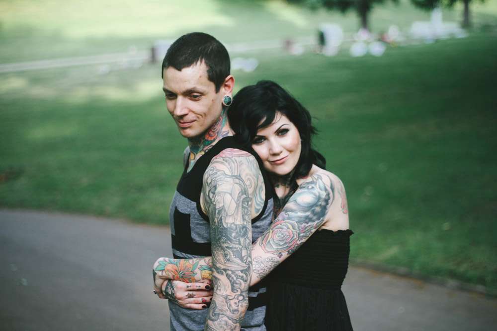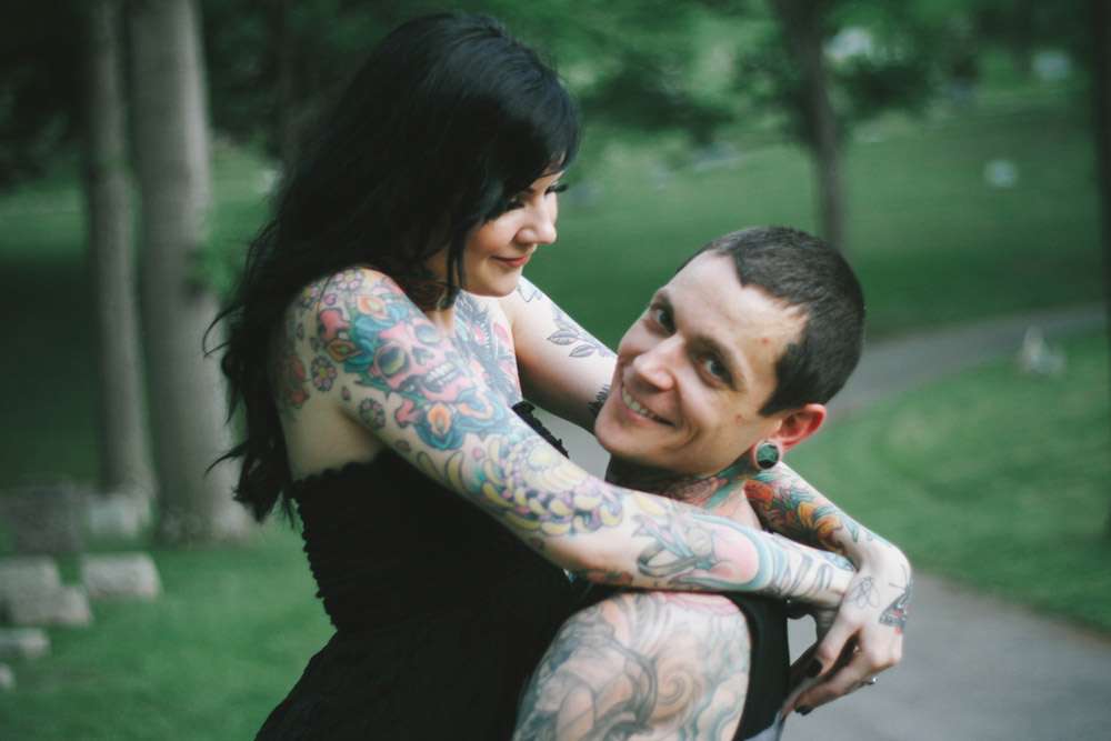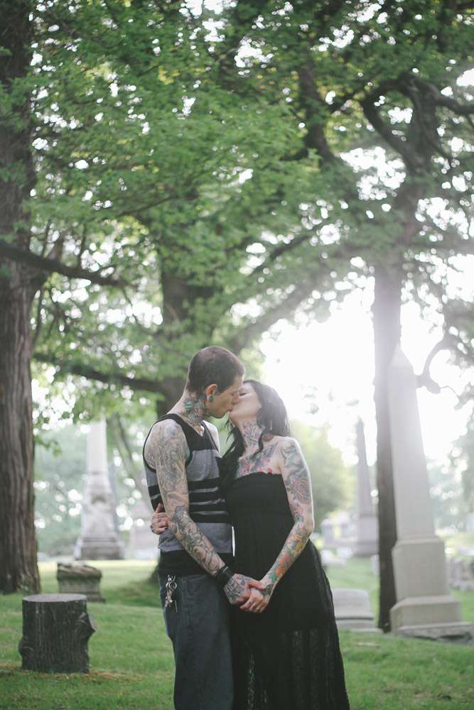 “Both Jesse and Chris are tattoo artist and have beautiful work themselves so I really liked contrast of their bright tattoos and all the green in the cemetery this time of year. They are really into each other (obviously) so I tried to get a lot of photos of the two of them just interacting with one another. I wanted to keep it simple and natural. It was a blast.”