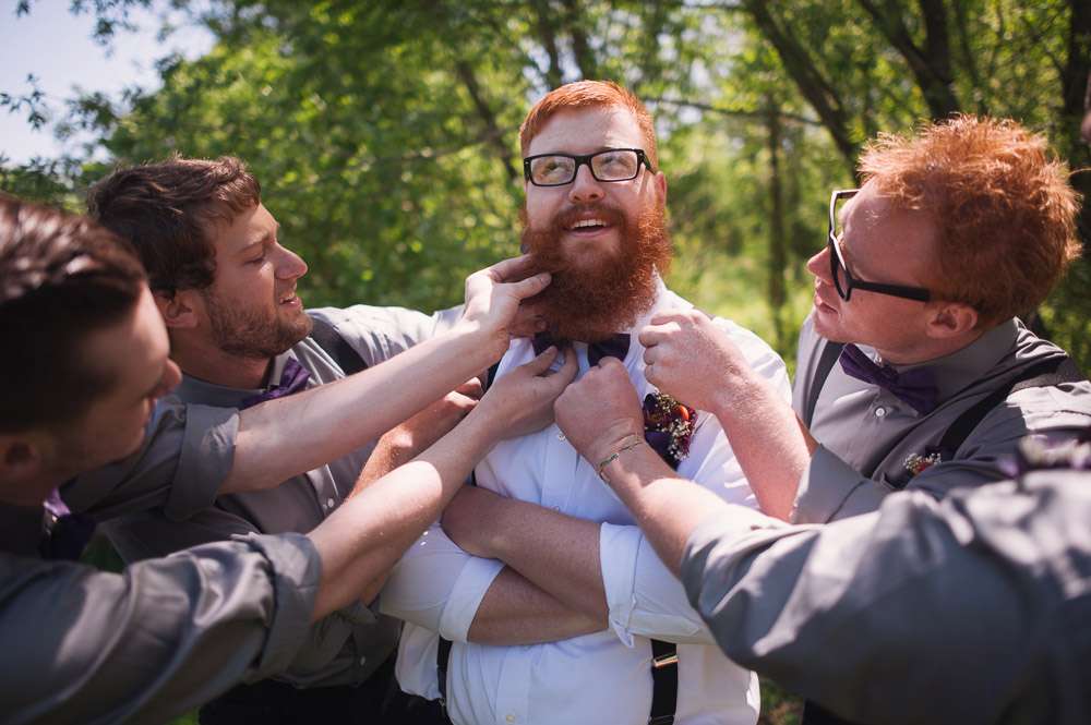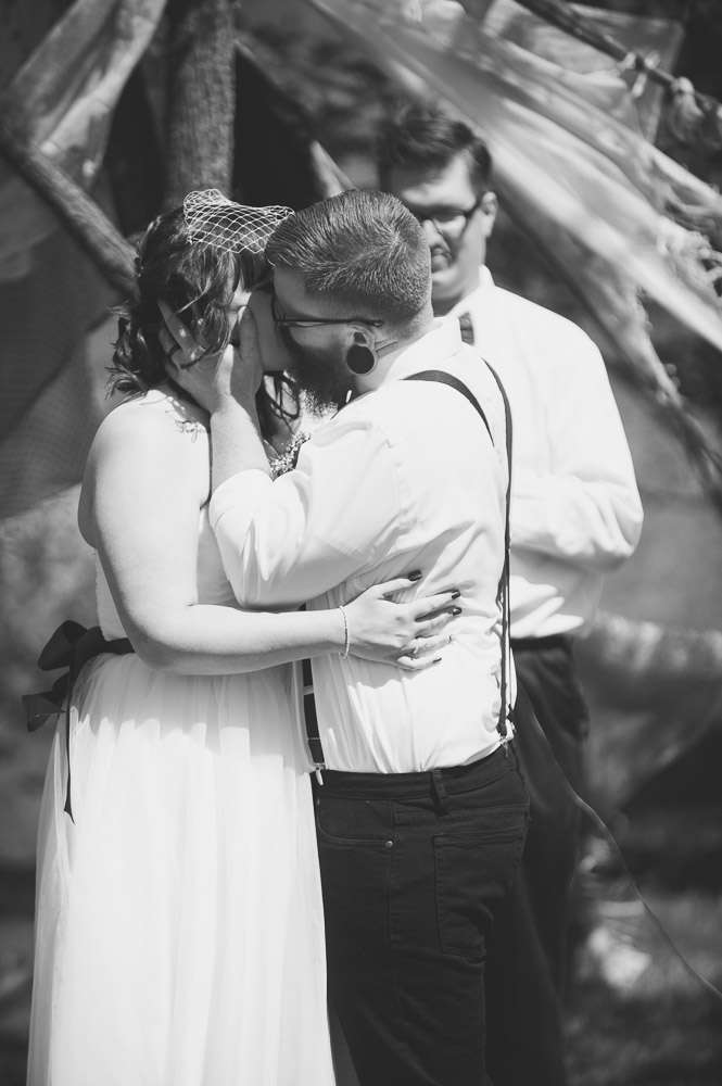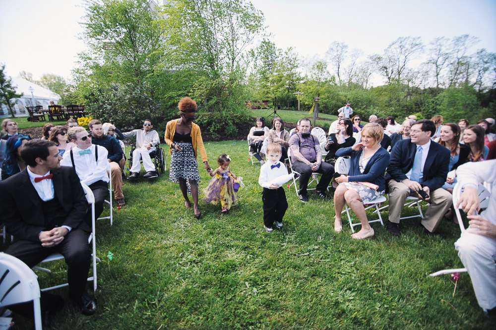 Rachel and Ryan wanted a beautiful but fun wedding so they decided on a subtle vintage carnival theme. They didn’t want it to be cheesy or too overly done, and “No clowns” was top of their list of requirements. “We wanted it to feel like a beautiful whimsical wedding at a carnival and not have it be a cheesy carnival wedding,” began Rachel. “We also wanted people to have a good time. We didn’t want people saying ‘that was nice’ we wanted them to shout ‘that was fun!’ The ceremony was heartfelt enough to make you cry, but funny enough to make you laugh with quirky remarks and personal heartfelt vows. From the start we asked people on the invitations to wear bow ties and suspenders. Everyone loved the dress code and looked straight out of the 50s as the music blared.”