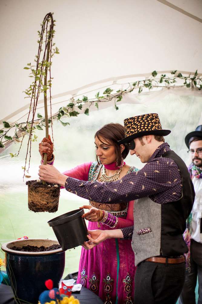 Kiran and Josh had a two-day wedding on the 3rd and 4th of May. Their main aim was to throw a celebration that felt very ‘them’ and for everyone to have a great time. Big weddings can often cost a lot, but even with their two day event, this savvy couple only spent £8500! They called in favours, DIYed a LOT and made some clever and unusual choices in order to save money. Everything from the flowers, the cake, the DJ and the stationery were either DIYed by the couple or donated by friends.