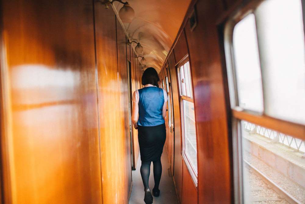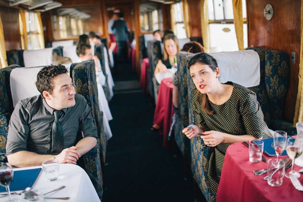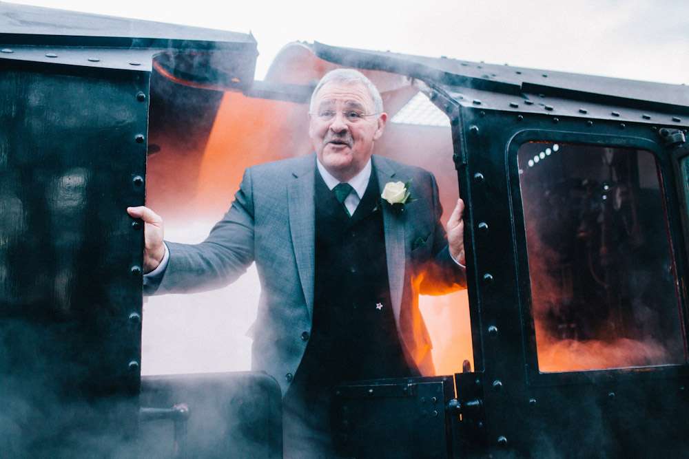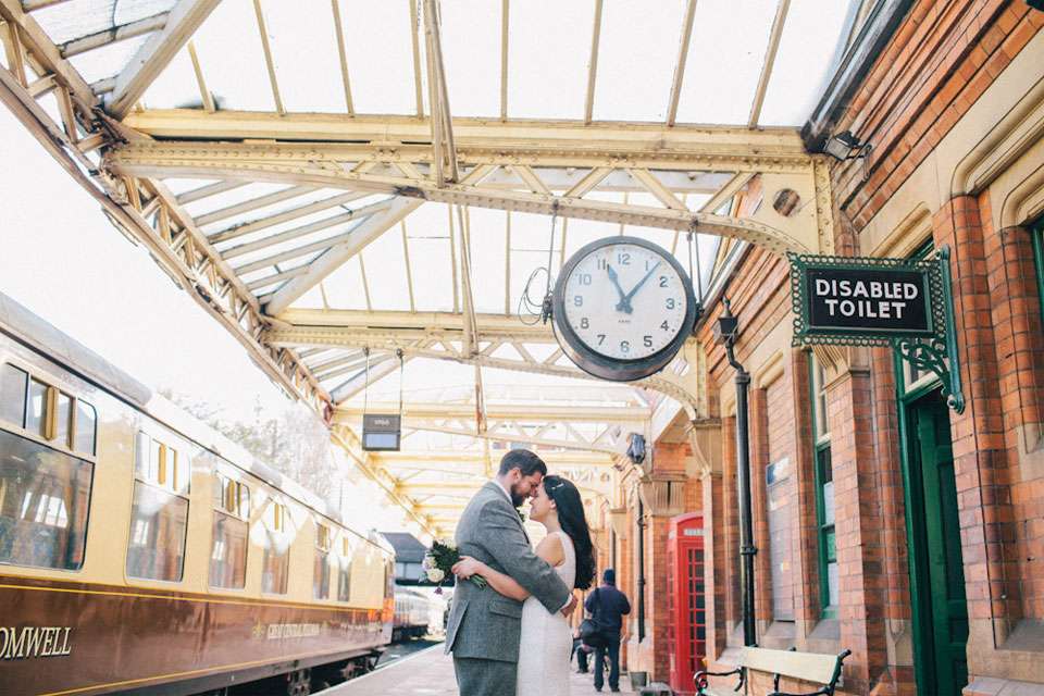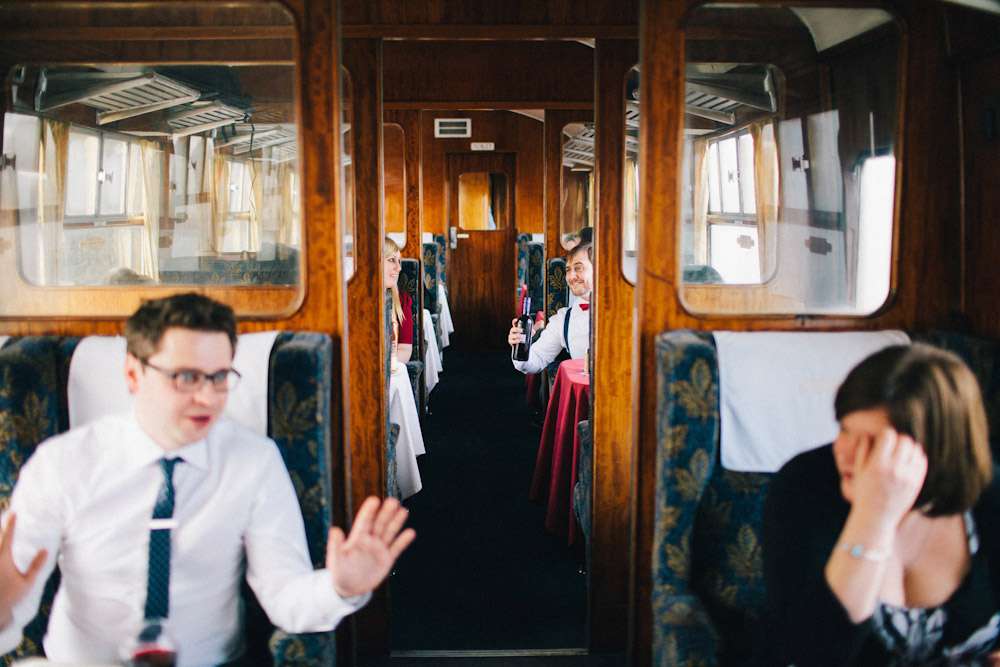 It’s not everyday you get to see a wedding on a steam train so I’m super excited to share Sarah and Gareth’s fun wedding with you today. “Our wedding was randomly retro, vaguely vintage and a bit of a mish-mash adventure!” began the bride. “I grew up going on steam trains as a treat as my Grandpa was a big fan! So I was straight on the blower to The Great Central Railway as soon as we got engaged. We were lucky enough to be able to hire a fancypants Pullman rake, which is a bit ‘Orient Express’ – my Grandpa would be proud!”