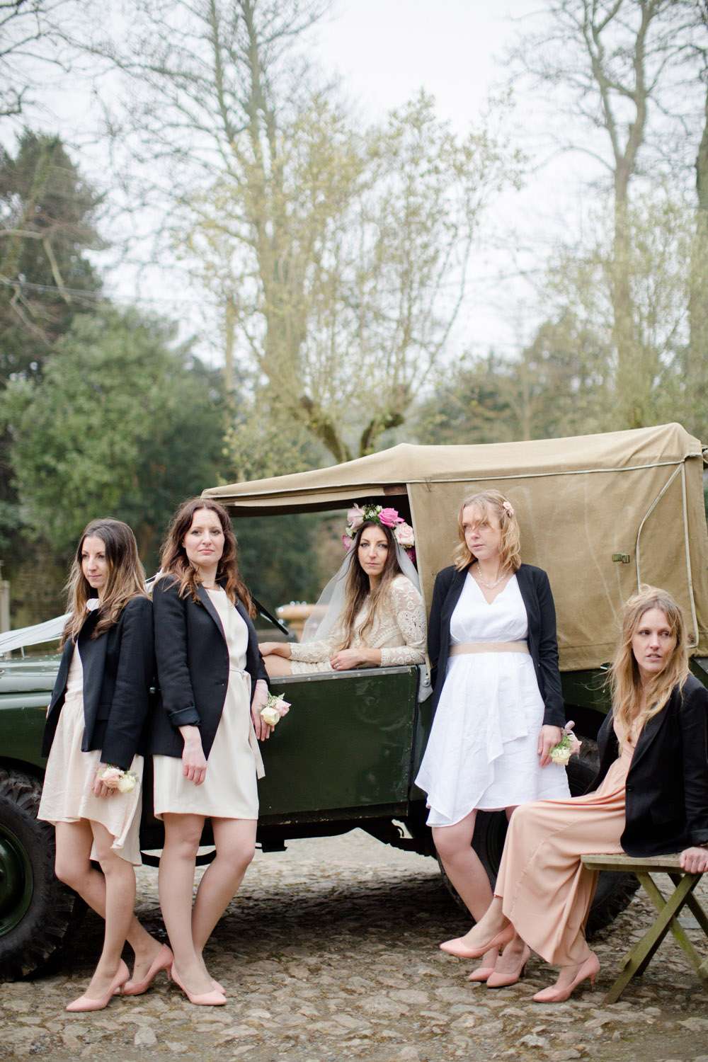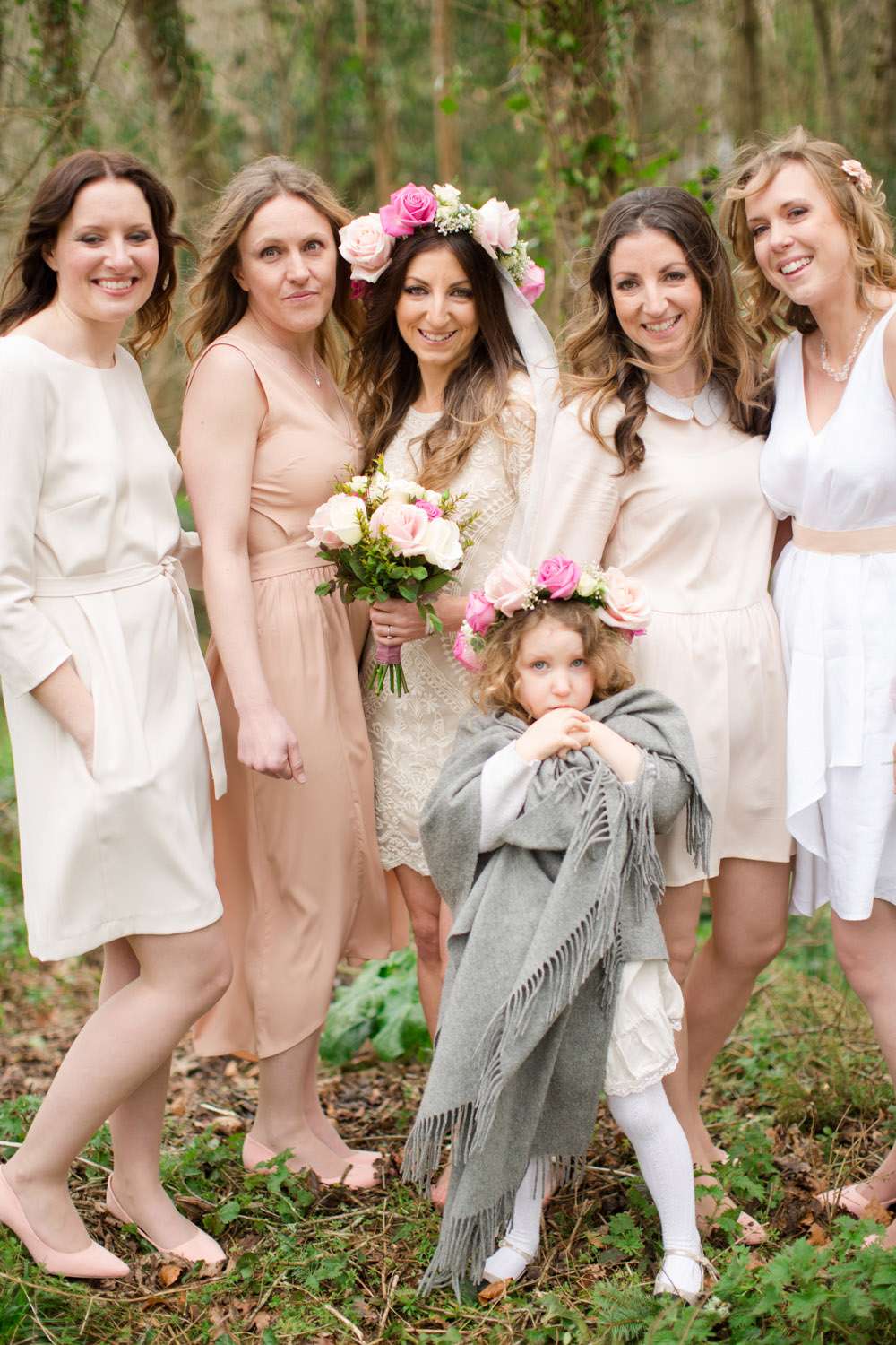“The bridesmaids dresses were all individual yet sat together because of the pretty, tonal colours. Their shoes, a dusty pink, also matched which tied them all together. I loved their shoes! Matt and his groomsmen wore chinos, shirts and braces with a white rose boutonnière. Again this was quite an American look seen a lot online, and felt more informal than a suit. They did have to add a jacket in the end as it was so cold! Matt also wore a handmade lace and silk tie by Marwood.”