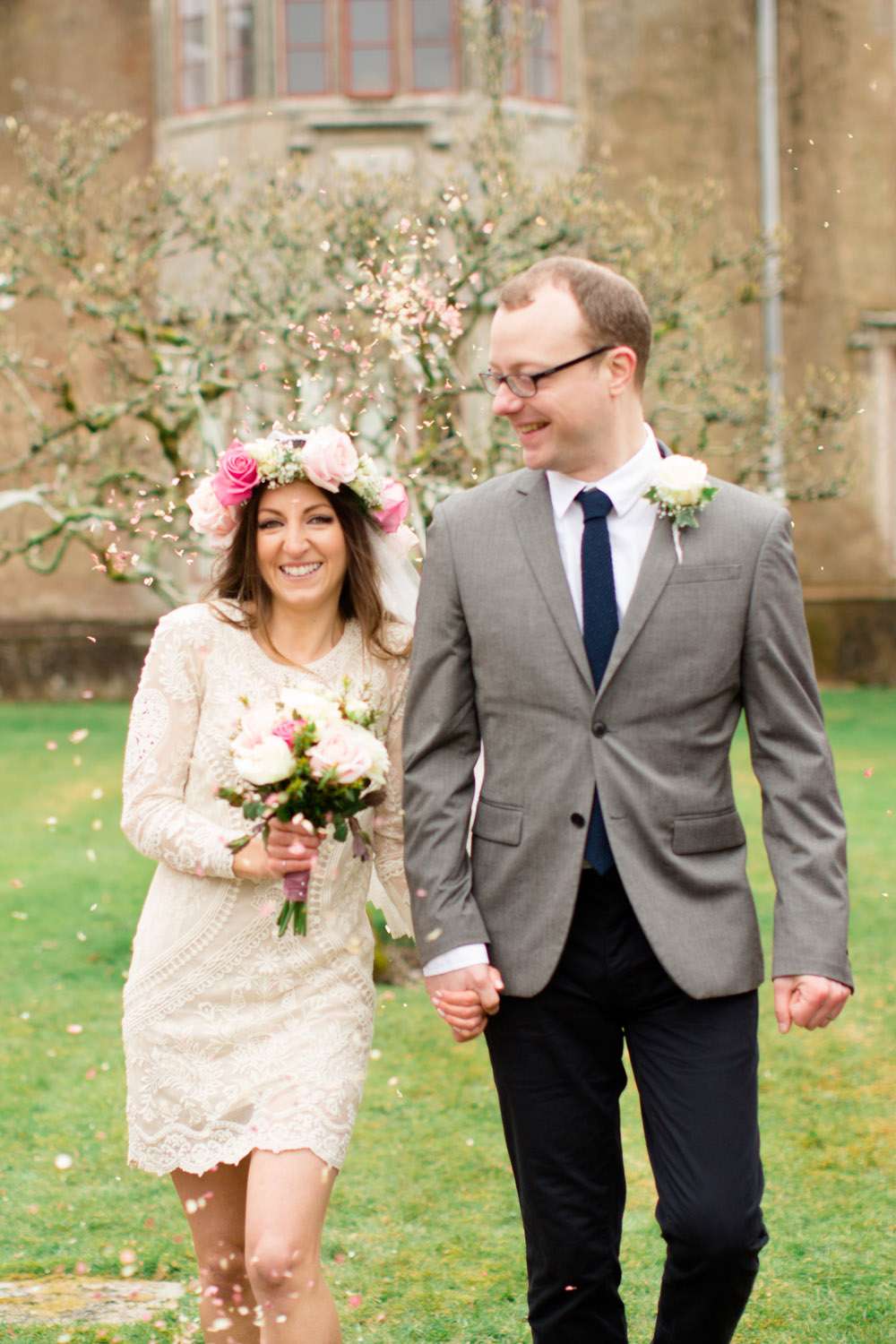 “The ceremony was the biggest highlight for us both, even though it was a bit cold, okay, that’s an understatement, it was freezing! But at least it didn’t rain, which meant we could still have the ceremony outside. Our guests had to wrap up and my poor bridesmaids almost went blue! Our 4 year old niece Bailey was our flower girl. Wrapped up in a blanket she took her role very seriously and concentrated so hard on scattering the petals that she didn’t look up from her basket. Super cute! We had the talented Polly Jones sing for us during the ceremony. When she sang Ho Hey by the Lumineers it was the most magical moment of all as we were both surrounded by our family and friends in such a beautiful setting. I get goose bumps whenever I hear that song now! Overall we hoped our wedding would feel intimate, relaxed and not too formal without losing all of the traditions.”