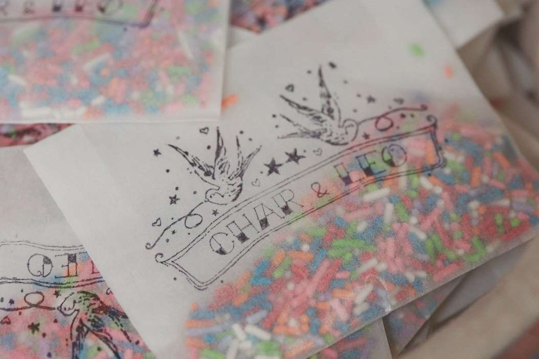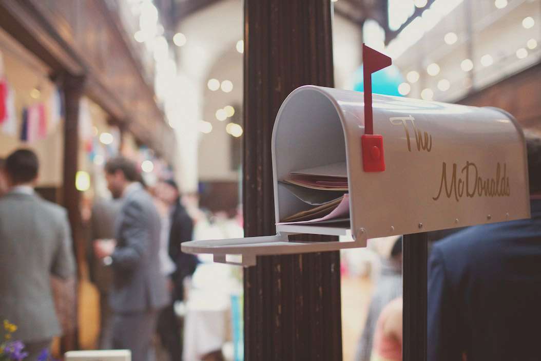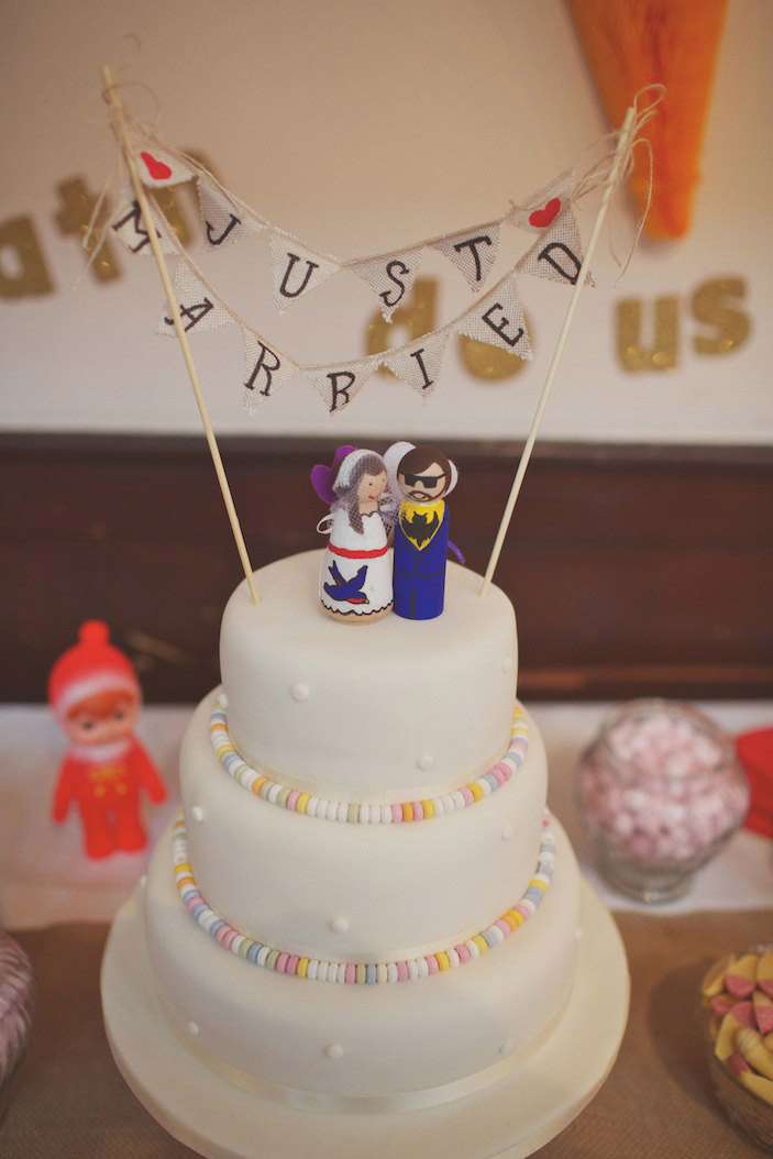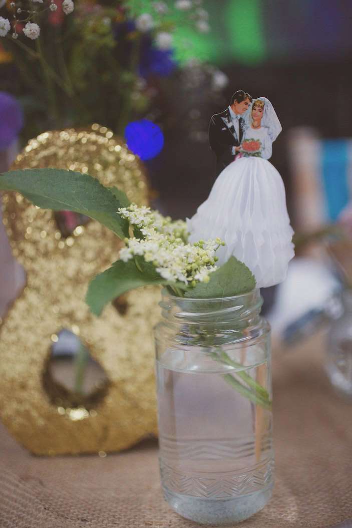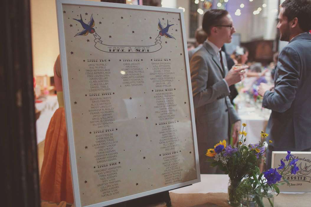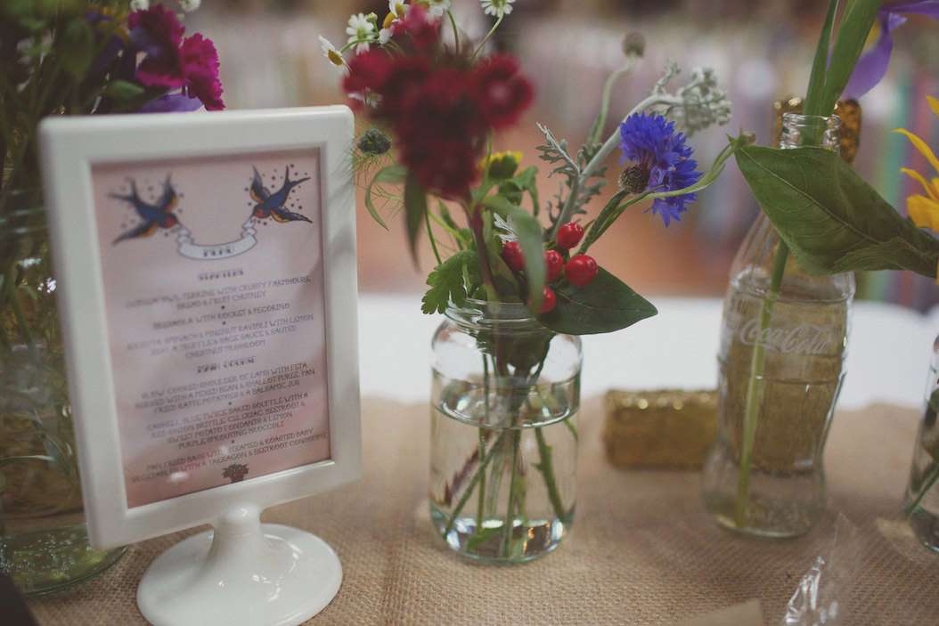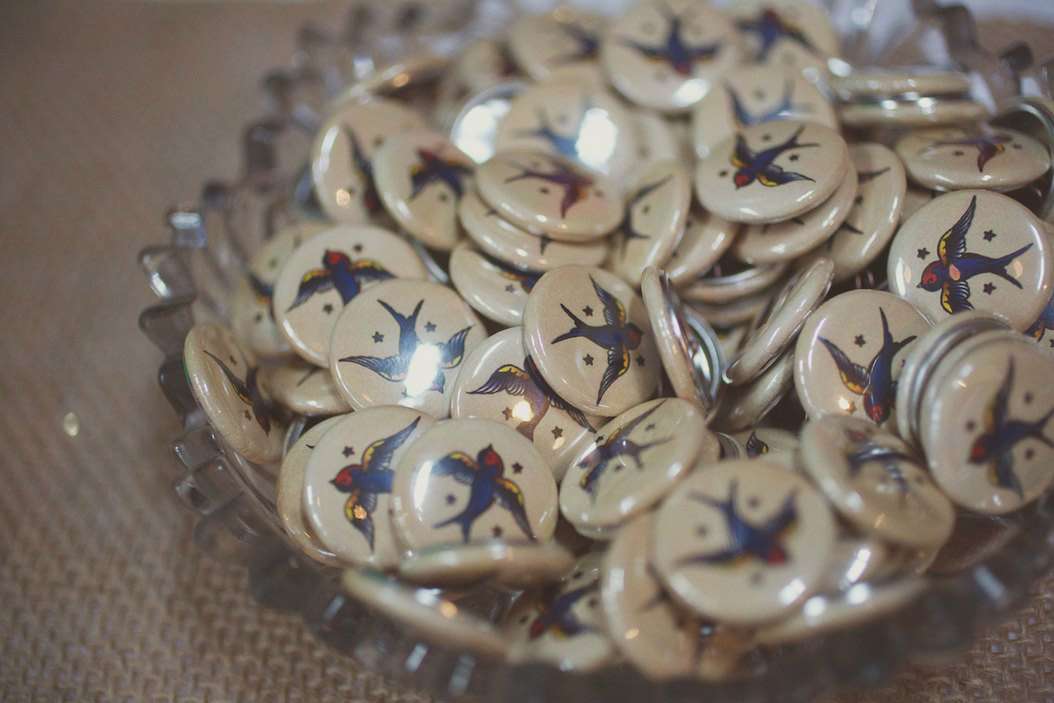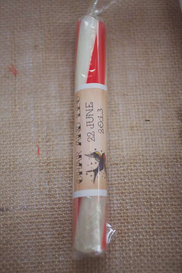 “We definitely had a budget and DIYed a lot of the details to save money, but knew there were some things we wanted from the outset that we then worked our budget around so that we could afford them – a live band to rock out too in the evening with our friends, a photo booth (we’re both keen snappers ourselves and can’t resist a photo booth) and sticks of rock as wedding favours. Everything else changed multiple times! Both our tastes are quite eclectic – we’re real magpies for anything kitsch, glittery and retro – and at one point it did seem to be spinning out of control – what do an American mailbox, lawn flamingos, toadstool night lights, swallows, glitter and every colour under the sun have in common? What was our theme? We panicked for a moment or two, especially when looking at the perfectly choreographed themed weddings we saw elsewhere, but then we realised what brought it all together was US! We were what pulled it all together and I don’t think anyone was surprised to see any of the things that popped up at our wedding there!”