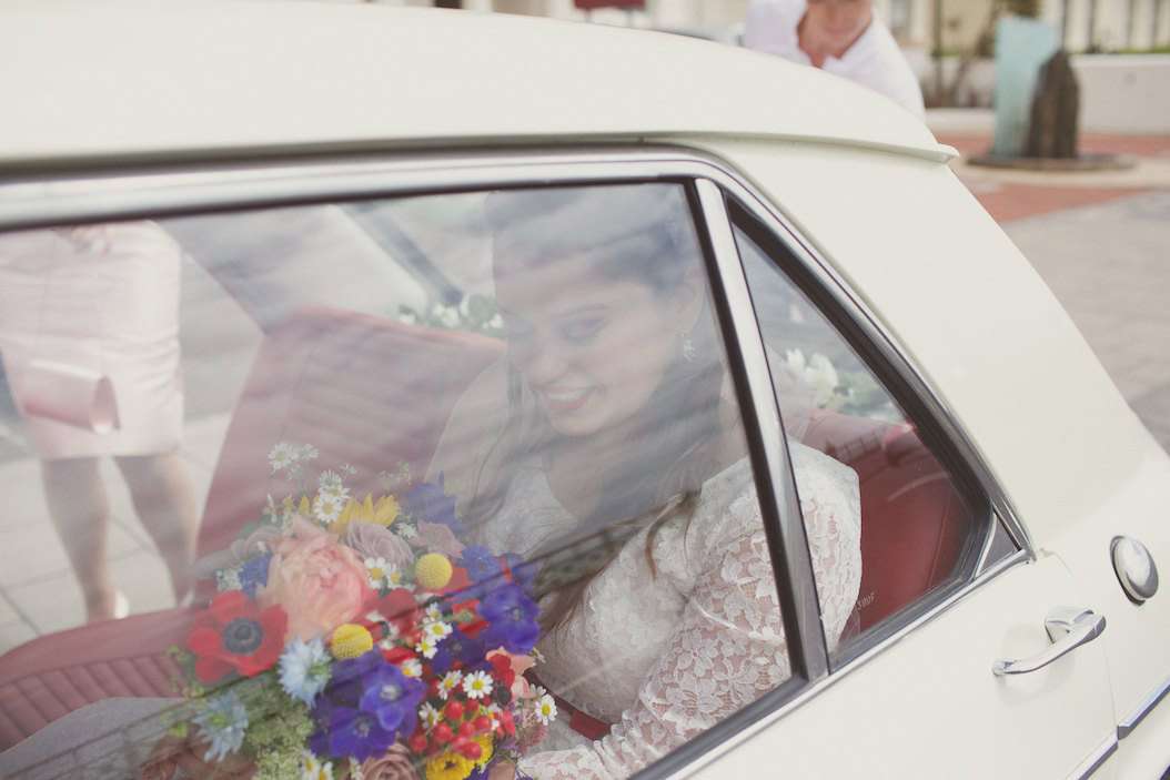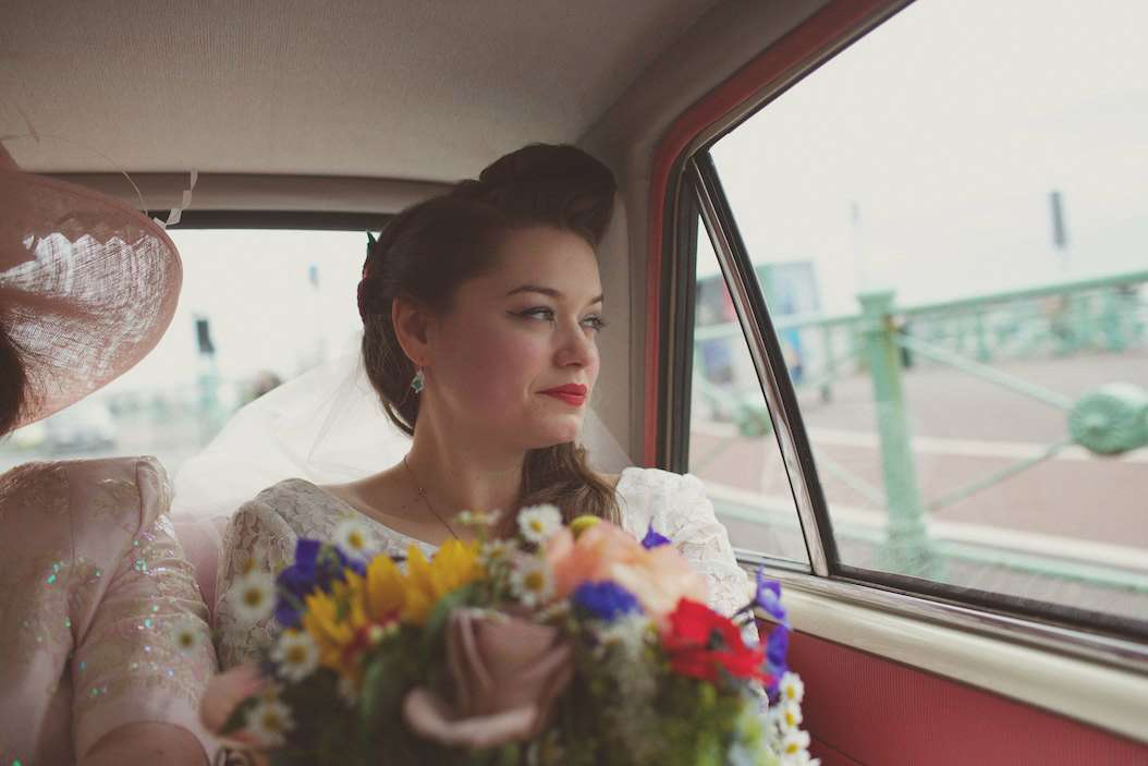 Charlotte wore a beautiful dress and veil from Fur Coat No Knickers. The brooch in her hair was by The Doll City Rocker on Etsy and stitched to the veil. Her shoes and sunglasses were Miu Miu and her bag and jewellery, Kate Spade. Damn, what a seriously stylish bride!