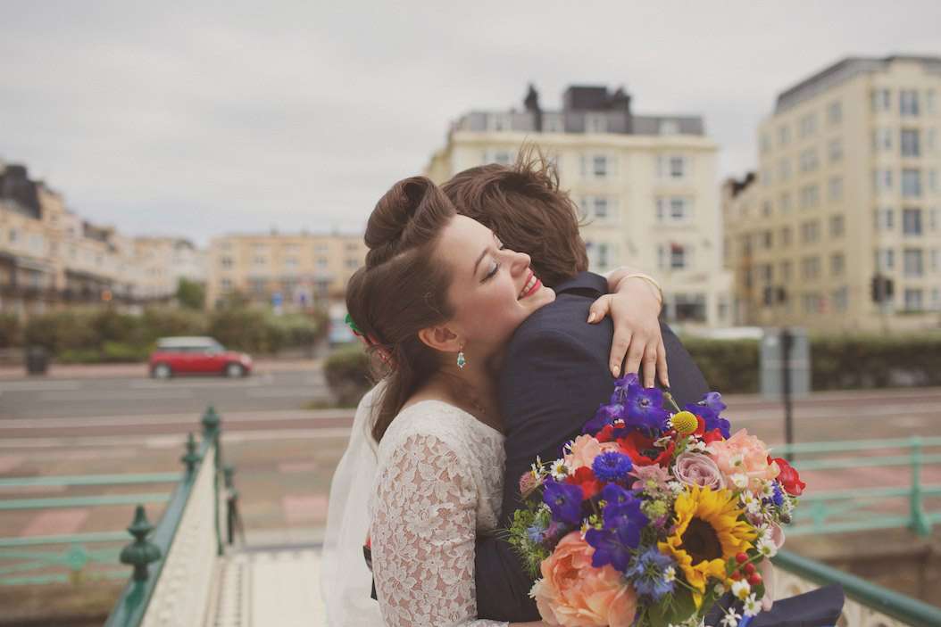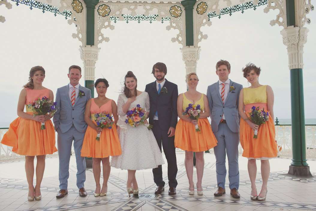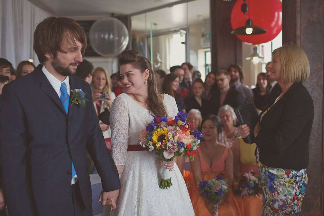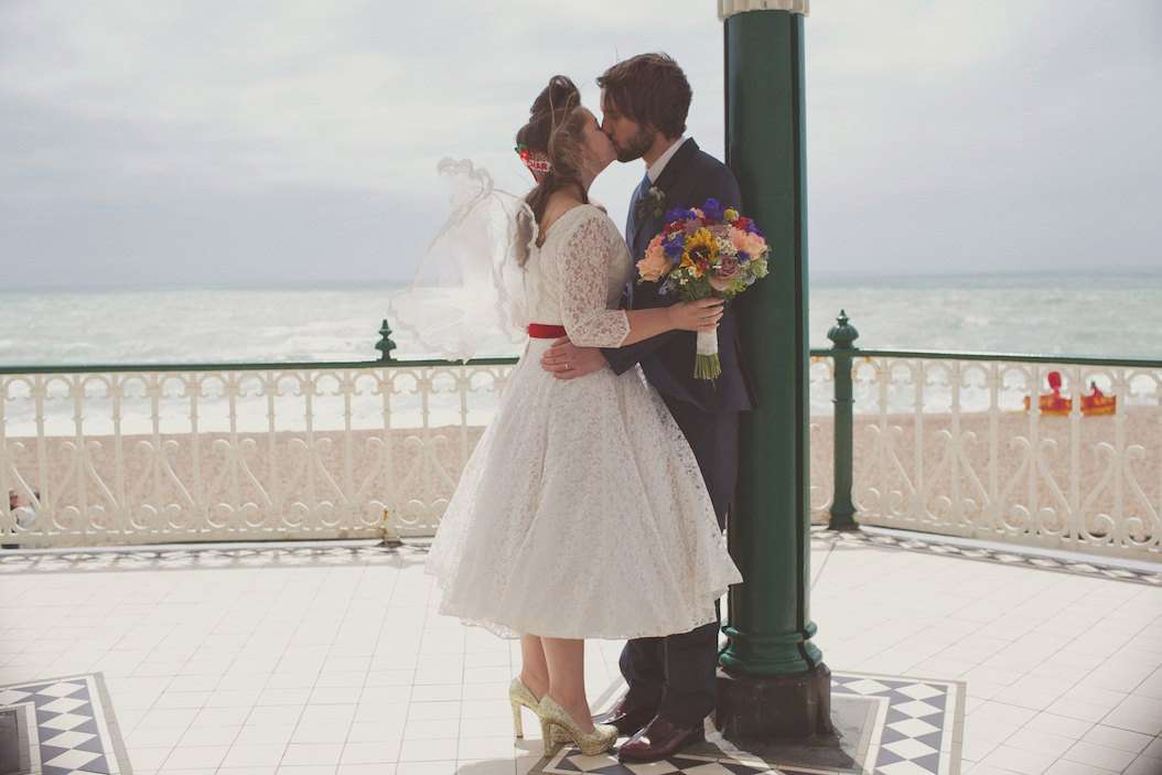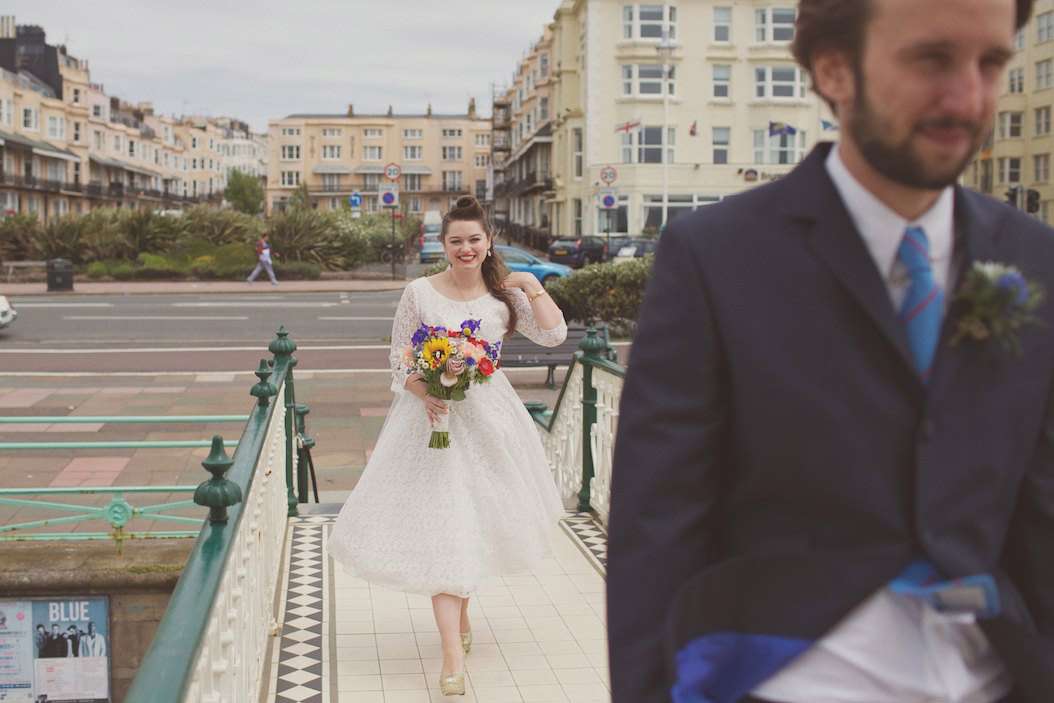 The ceremony was held in the cafe below the famous Brighton bandstand (they originally planned to get married on it but the weather wouldn’t allow it!) “When we began planning we decided we wanted to have a big party to celebrate with our friends and family, most of whom live down South, while we are currently living in Liverpool for my job”, began Charlotte. “We don’t get to go down as often as we would like, or to see everyone on each occasion, so we wanted to make the day as fun as possible for all the family and friends who are so important to us. We consciously decided in the end not to call upon our friends’ many musical, artistic and culinary skills as we wanted everyone to be able to relax and enjoy the day, although many of them were absolute super stars at helping us set up the day before.”