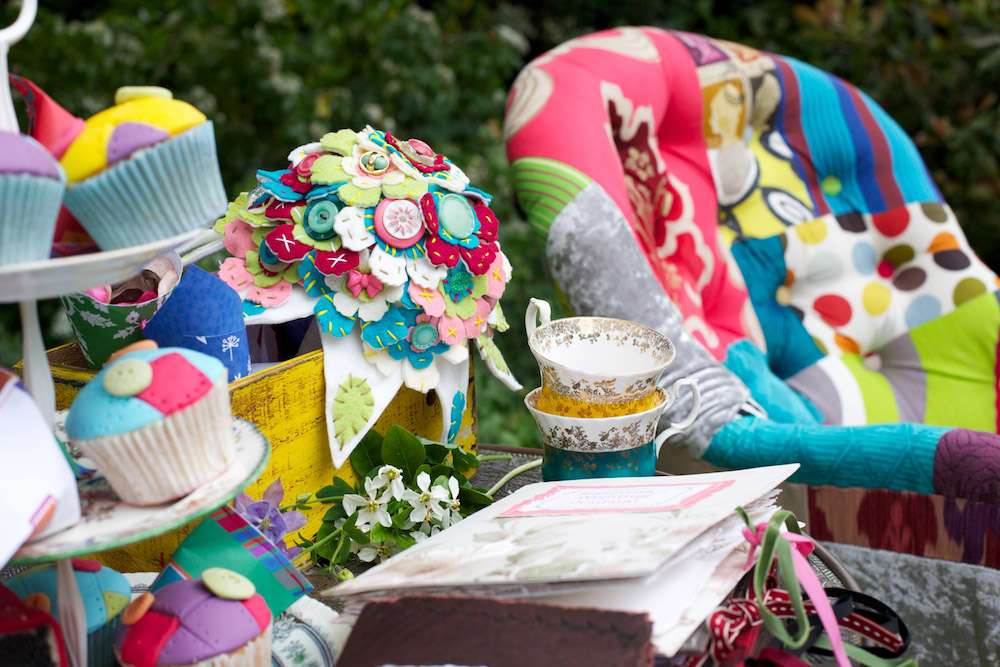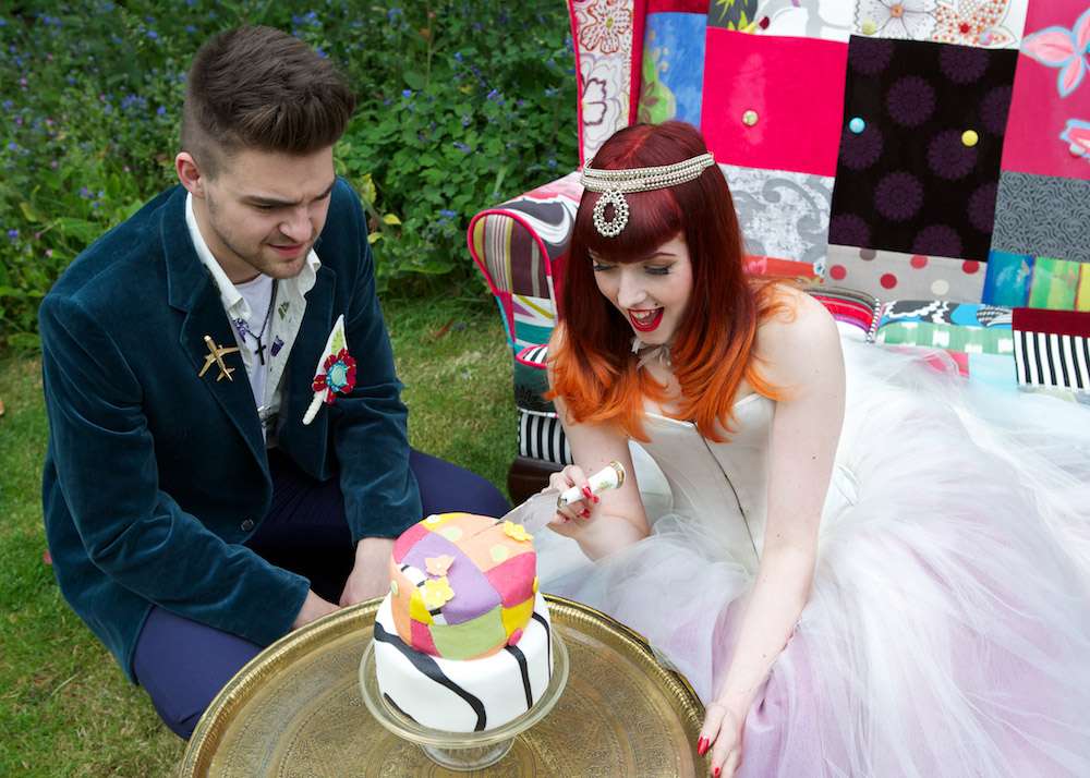 Always wanting to do a wedding inspiration shoot with a difference, photographer Sharon Cooper finally found her mojo when she came up with this hotch-potch and patchwork theme. “I wanted to do something that packed a punch and used a range of uplifting colours”, she explained, “an alternative to weddings which have one single colour theme. This shoot embodies pleasing mixed colours and offers a smorgasbord of individualism. I found myself loving patchwork and texture and colour.”