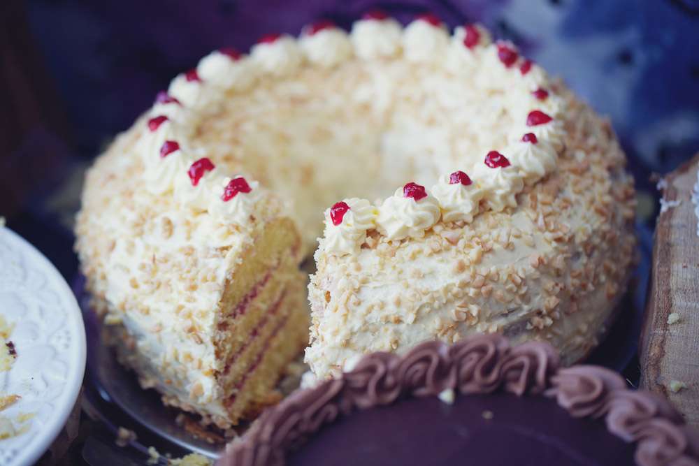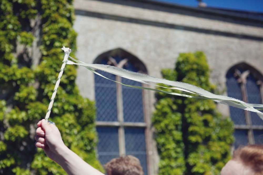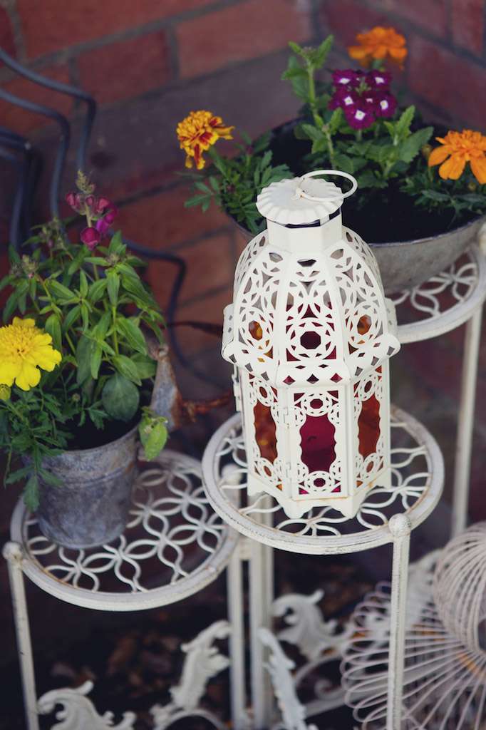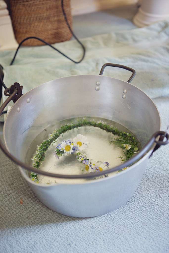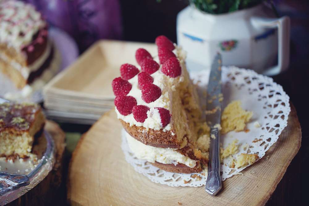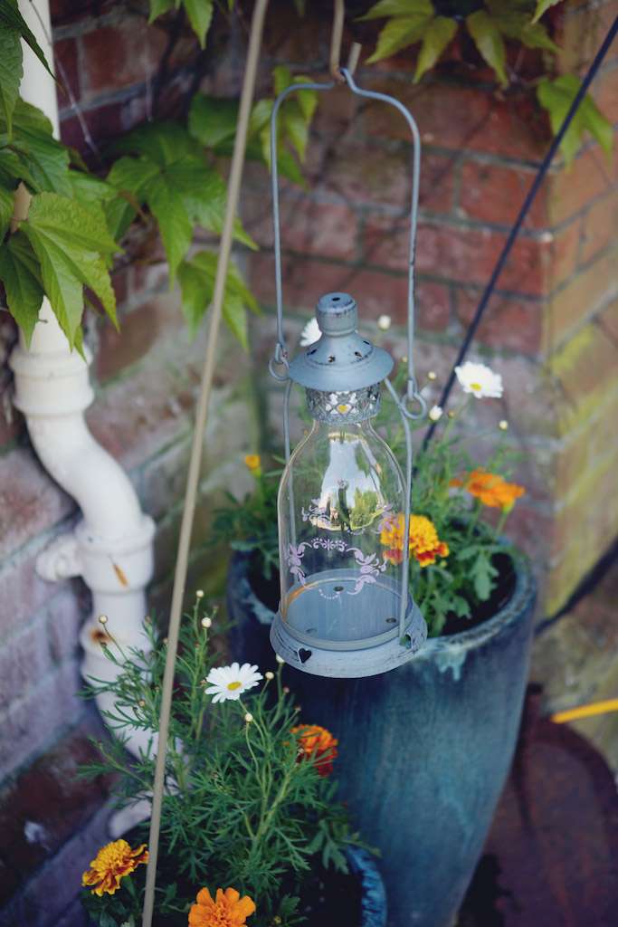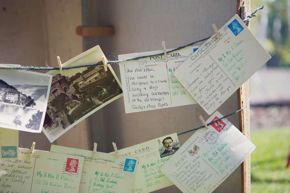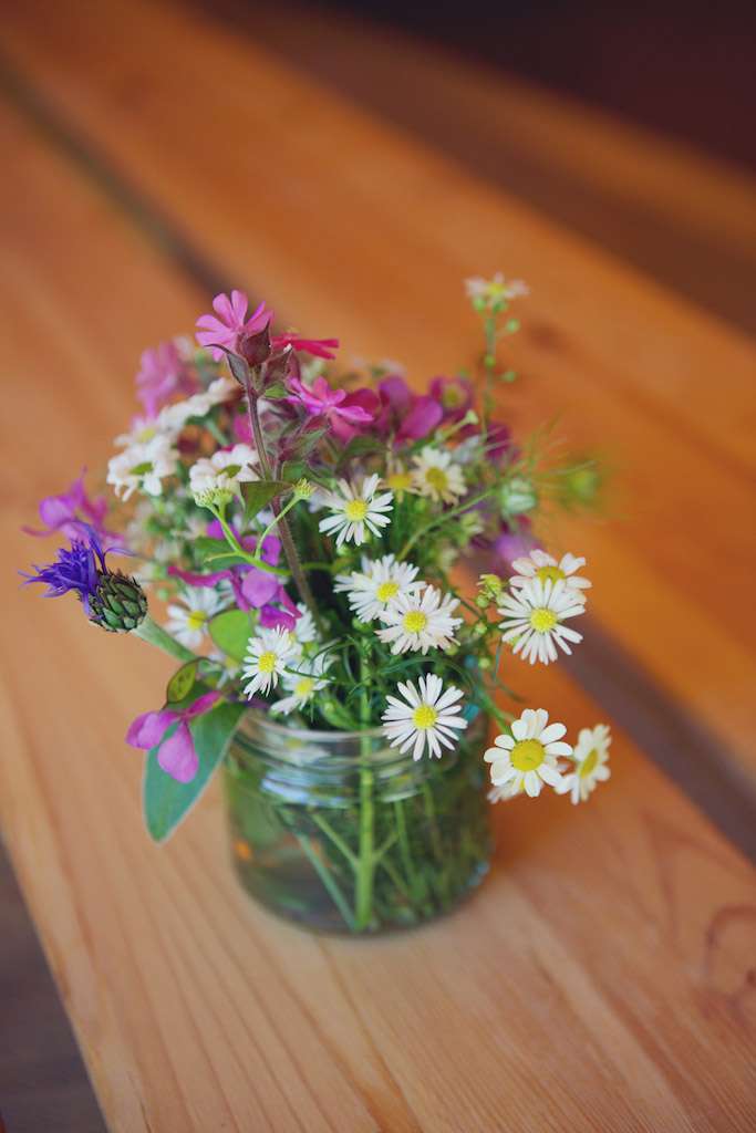 “We also went to a ‘pick your own’ and picked enough strawberries to do a massive batch of jam for favours, and some cherries too. I bought some trim, ribbons, and funky fabric from the laines in Brighton and dressed the jars up, then wrote some labels. I dressed up that table with a load of old suit cases and the RSVP postcards from everyone. Other favours I did were little packets of wildflower seeds in envelopes from Amazon, I also bought an old botany book from eBay and cut out circles of flower illustrations to stick on. We displayed them on an old school desk covered in newspaper and plant posts, tins and soil.”