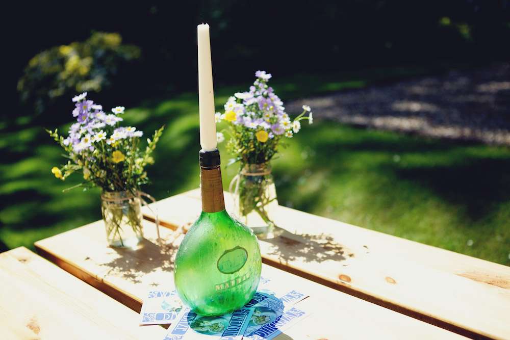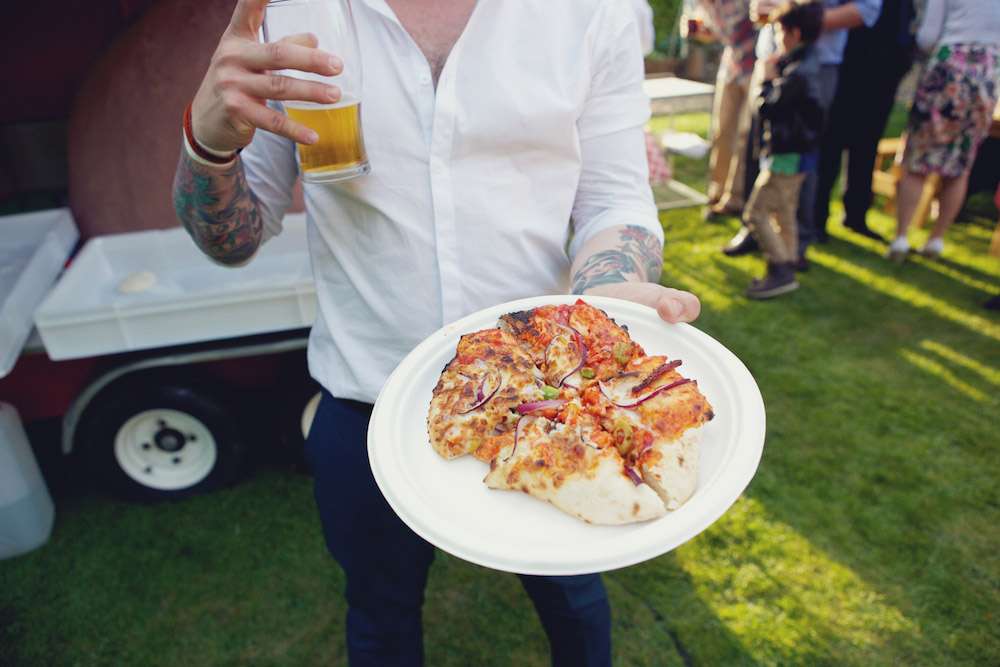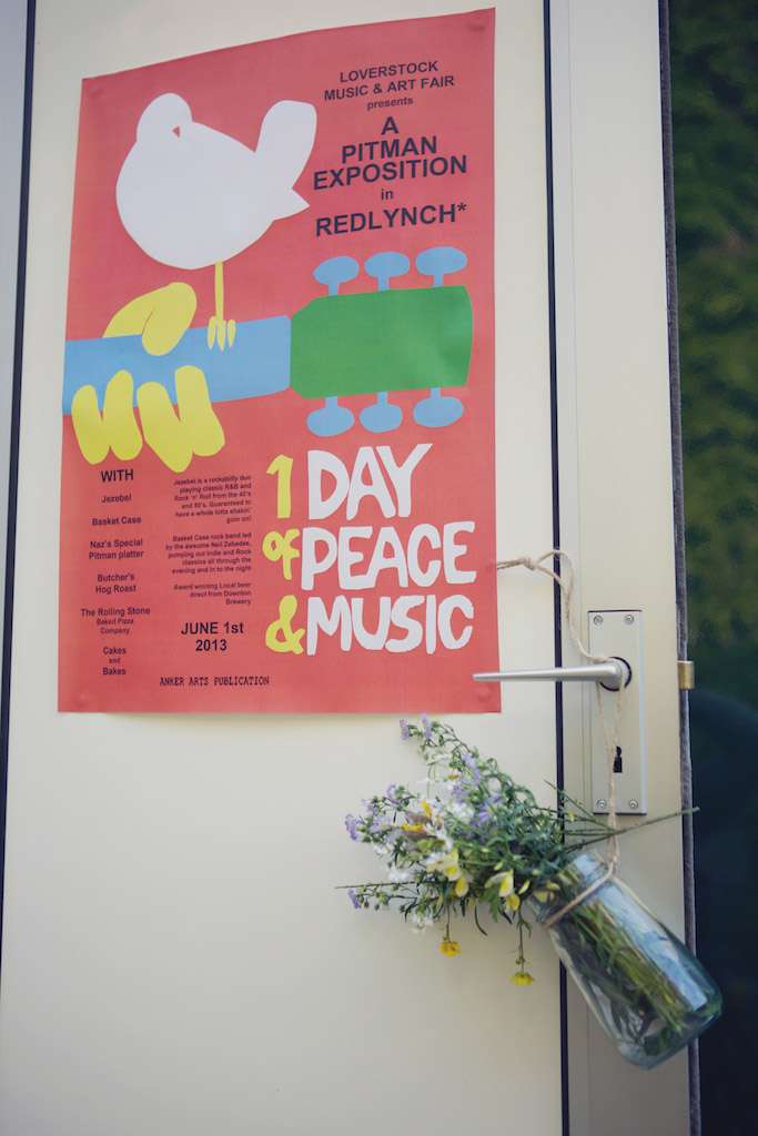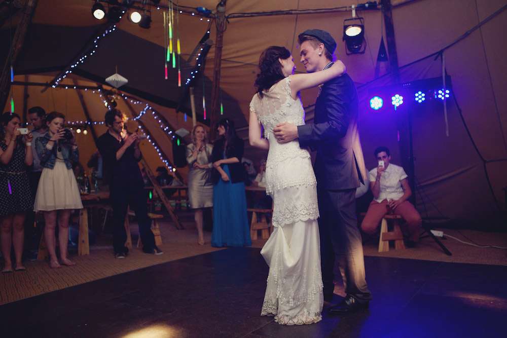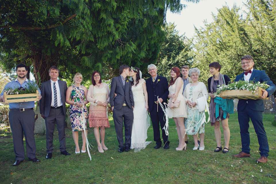 “We didn’t want to be constrained by a theme, colour schemes, or particular style we just did everything we liked”, she continued. “We knew that the main thing we wanted was everybody to enjoy it, and we tried to make it as laid back as possible. We knew we wanted local wildflowers, eco products, local suppliers, great bands and the gorgeous teepees and we generally tried to do anything we could ourselves. Our disposable tableware was made from fallen palm leaves in India, helping people in poverty to have a fair wage, and a lot more attractive and eco friendly than paper plates.”