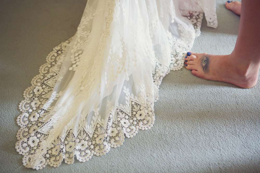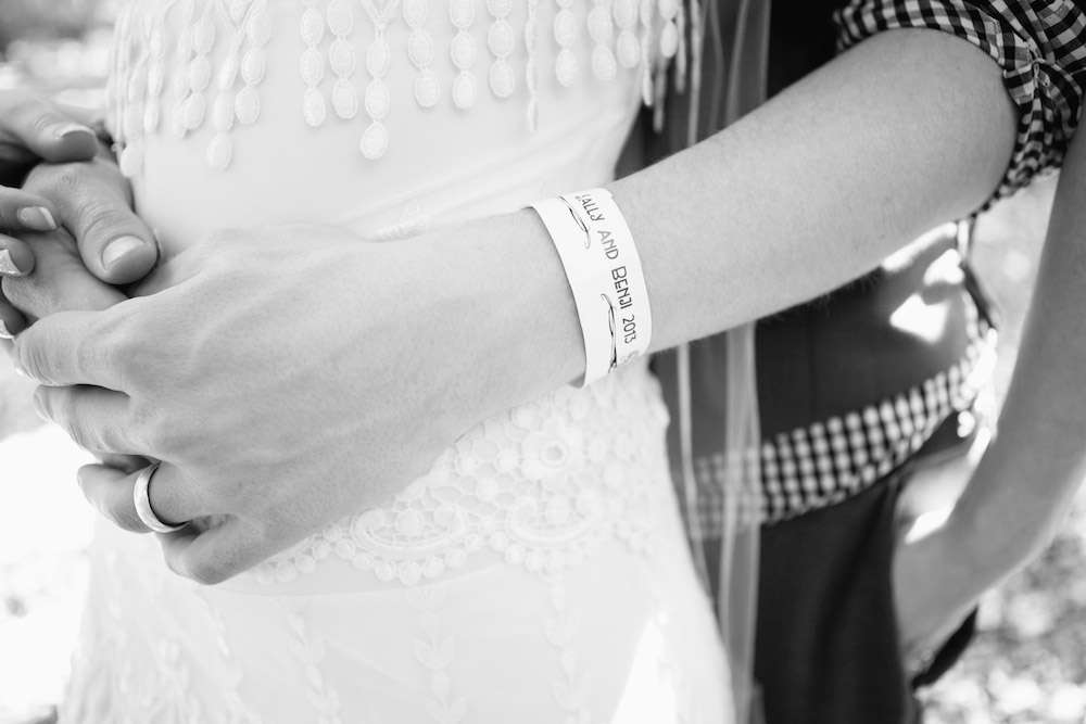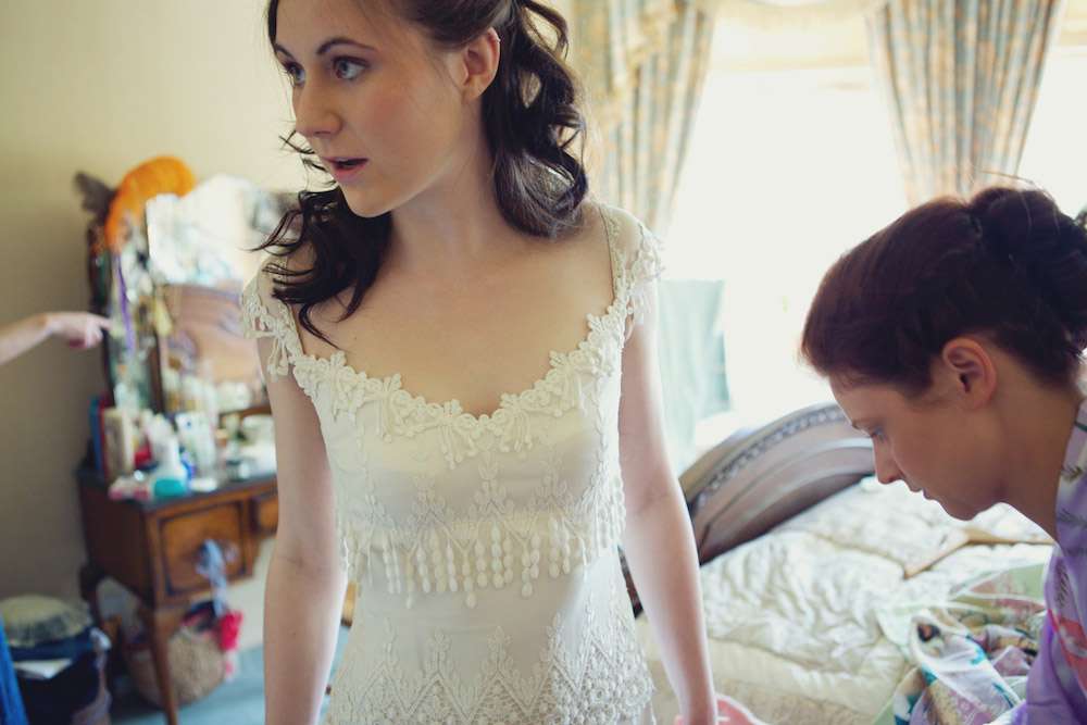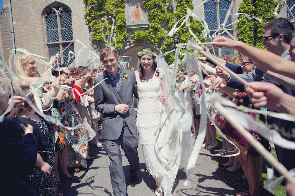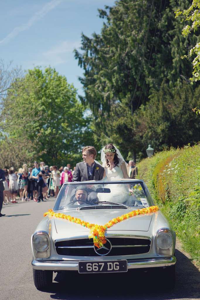 “We didn’t want to be constrained by a theme, colour schemes, or particular style we just did everything we liked”, she continued. “We knew that the main thing we wanted was everybody to enjoy it, and we tried to make it as laid back as possible. We knew we wanted local wildflowers, eco products, local suppliers, great bands and the gorgeous teepees and we generally tried to do anything we could ourselves. Our disposable tableware was made from fallen palm leaves in India, helping people in poverty to have a fair wage, and a lot more attractive and eco friendly than paper plates.”
