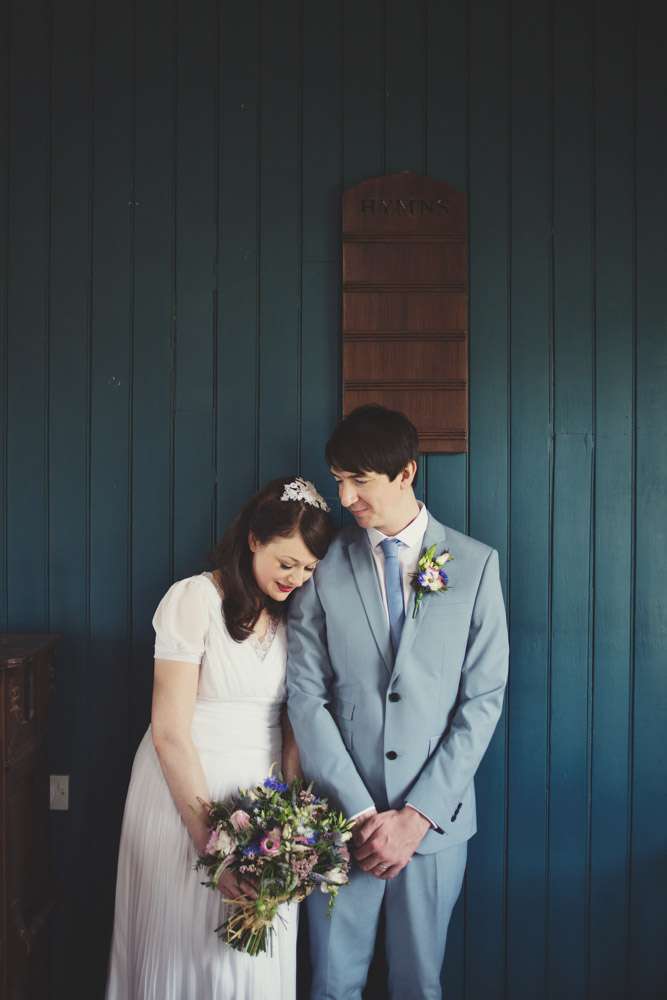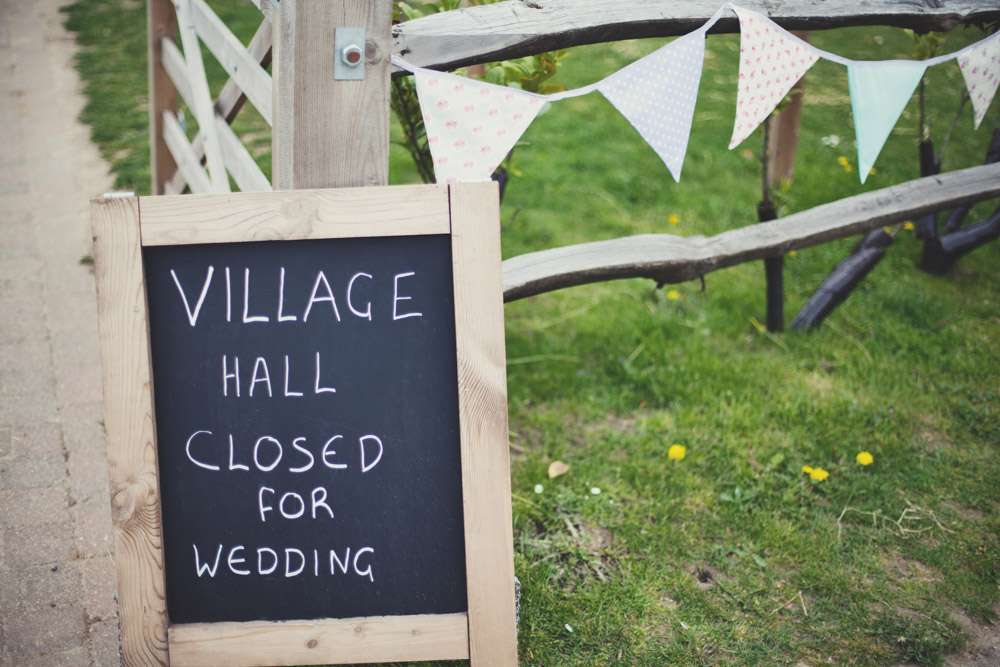 The day was held at Kent Life, a heritage farm in Maidstone. The space was decorated from top to toe by the couple themselves. “I’d always imagined a street party type feel for our wedding but that proved to be quite difficult to organise so we were really pleased when we found this original 1940s village hall at Kent Life”, she continued. “The fact that we could decorate it ourselves was a massive incentive for choosing the venue. Neither of us are fans of doing things as tradition dictates and the idea of having chair covers and white tablecloths foisted upon us made me very anxious! The venue was great and the fact that the village hall is surrounded by farmyard animals somehow made the whole idea of a wedding seem less pretentious and not too grand.”