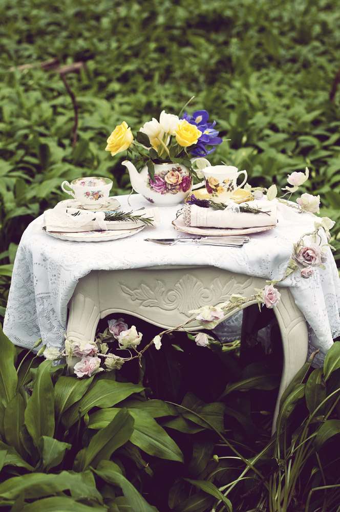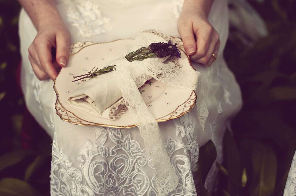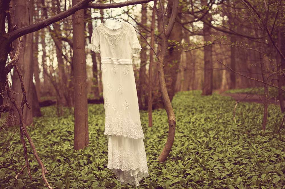 The couple wanted to get back to nature with this post-wedding shoot. The flowers and hair were designed to be very free and natural which fit with the forest location perfectly. Nicola loves vintage cameras and tea so these were also incorporated. “We wanted a very earthy, simple and beautiful shoot focusing mainly on the couple”, wrote Jade, “but we also wanted to show their love for these things within the set.”