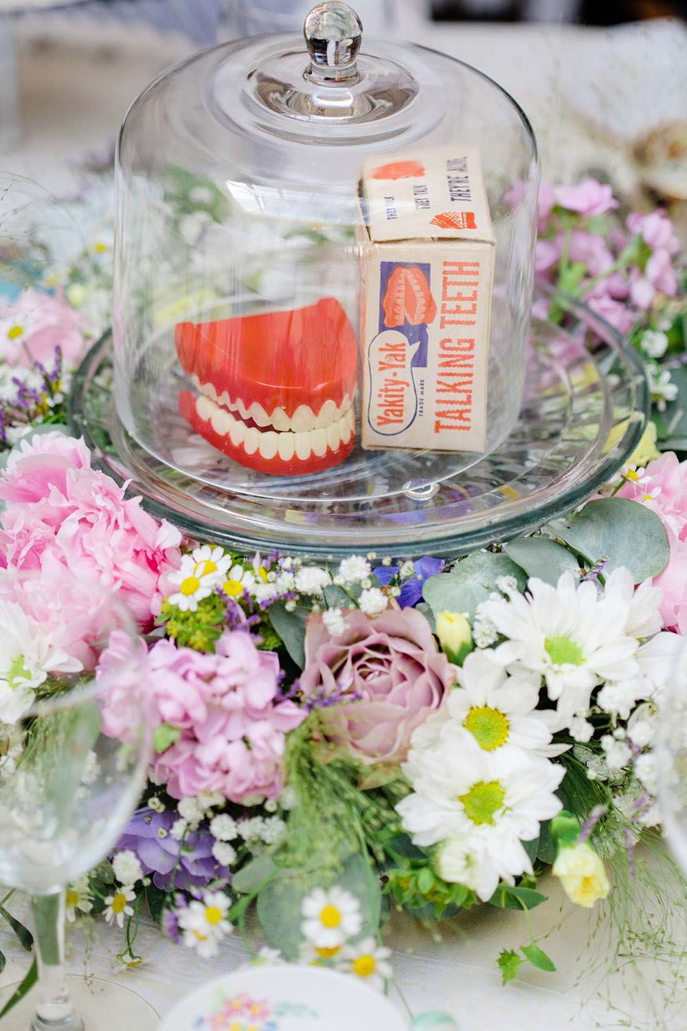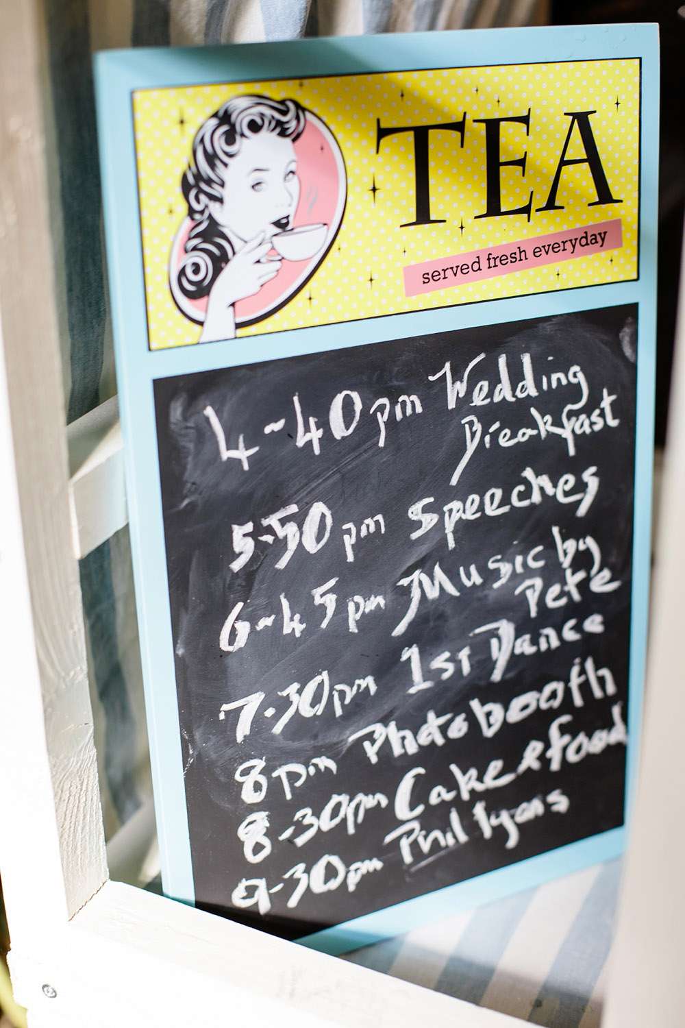 Daisy and Leigh’s retro wedding themed came about because they knew they wanted anything but a traditional day. “We decided to go down the retro/ vintage theme, but also I didn’t want it to be the typical ‘vintage’ wedding style that is everywhere at the moment!” Daisy wrote. “I also didn’t want a traditional sit-down meal so we had afternoon tea complete with cocktails served in teapots. The wedding eventually became about all of the things we love from the 1950s to the 1990s! I wanted our wedding to be really unpretentious and for everyone to have lots of fun.”