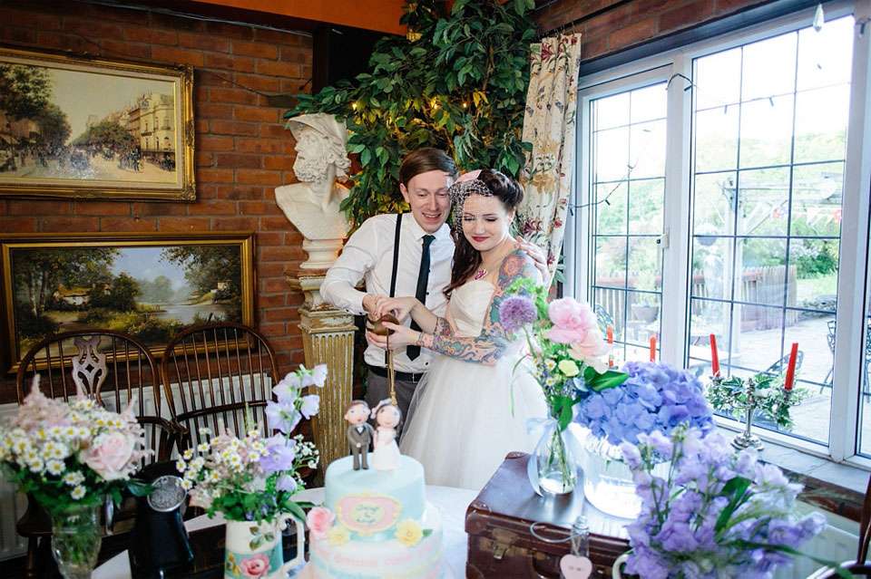 The couple DIYed their stationery and most of their décor items, but really they just wanted to keep things simple and fun for everyone. Daisy wore a short, 50s style dress which she had custom made by Fable and Promise “I loved my dress”, she continued. “Having it custom made was such a great idea. I had tried on at least 20-30 ready-made dresses before I designed my own and they just weren’t me. Rachel at Fable and Promise was fantastic and understood exactly what I wanted from my dress (including pockets!) I felt beautiful in it and spent a lot of the evening twirling around the dance floor with all of my petticoats!”